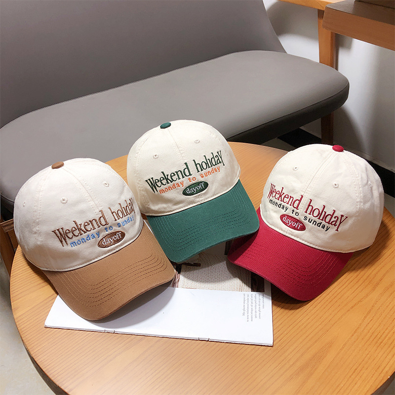 젊은 남성과 여성을위한 한국 자수 편지 색상 일치 야구 모자 커플 학생 하드 탑 오리 모자 복고풍 태양 모자스토어 가기