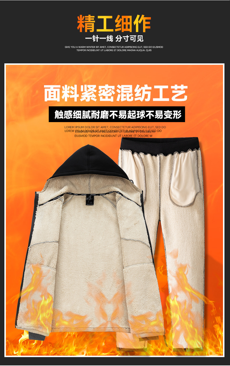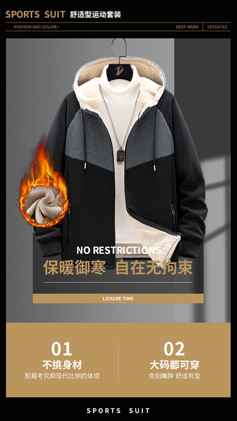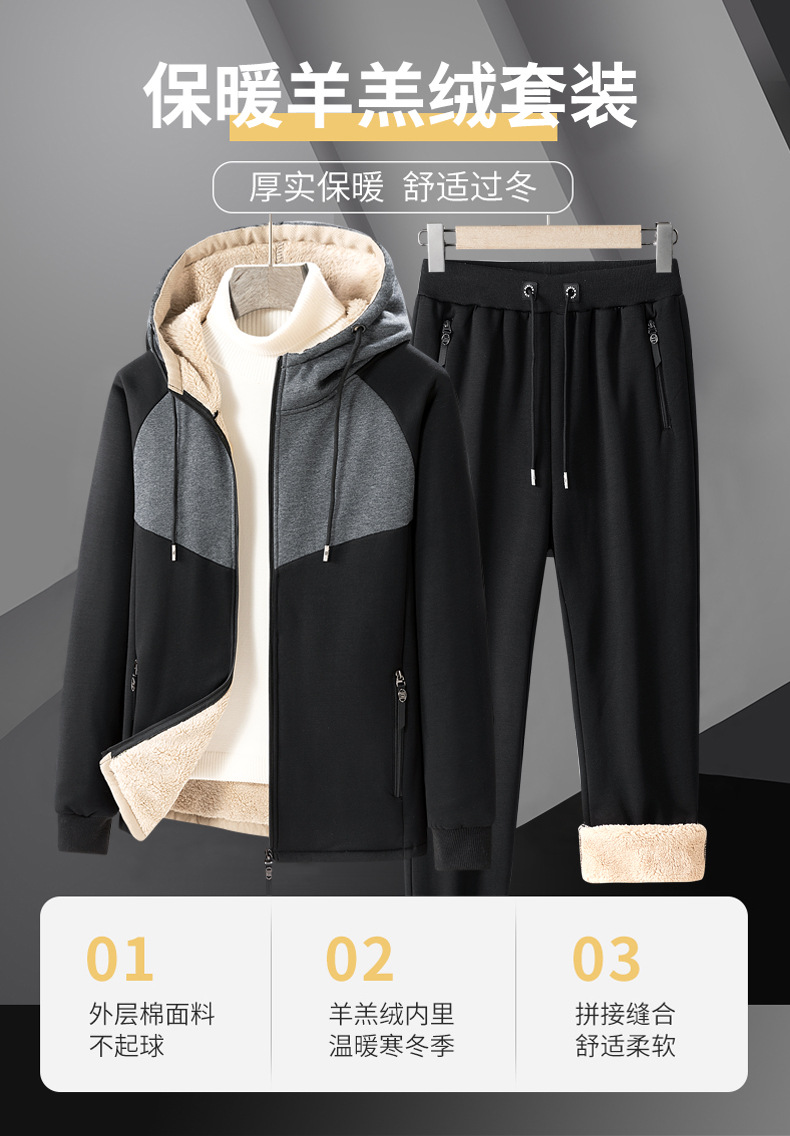 기모 두꺼운 따뜻한 캐시미어 스포츠 투피스 가을과 겨울 후드 카디건 스웨터 바지 새로운 세트 남성스토어 가기