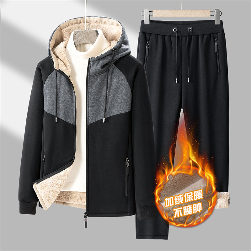기모 두꺼운 따뜻한 캐시미어 스포츠 투피스 가을과 겨울 후드 카디건 스웨터 바지 새로운 세트 남성