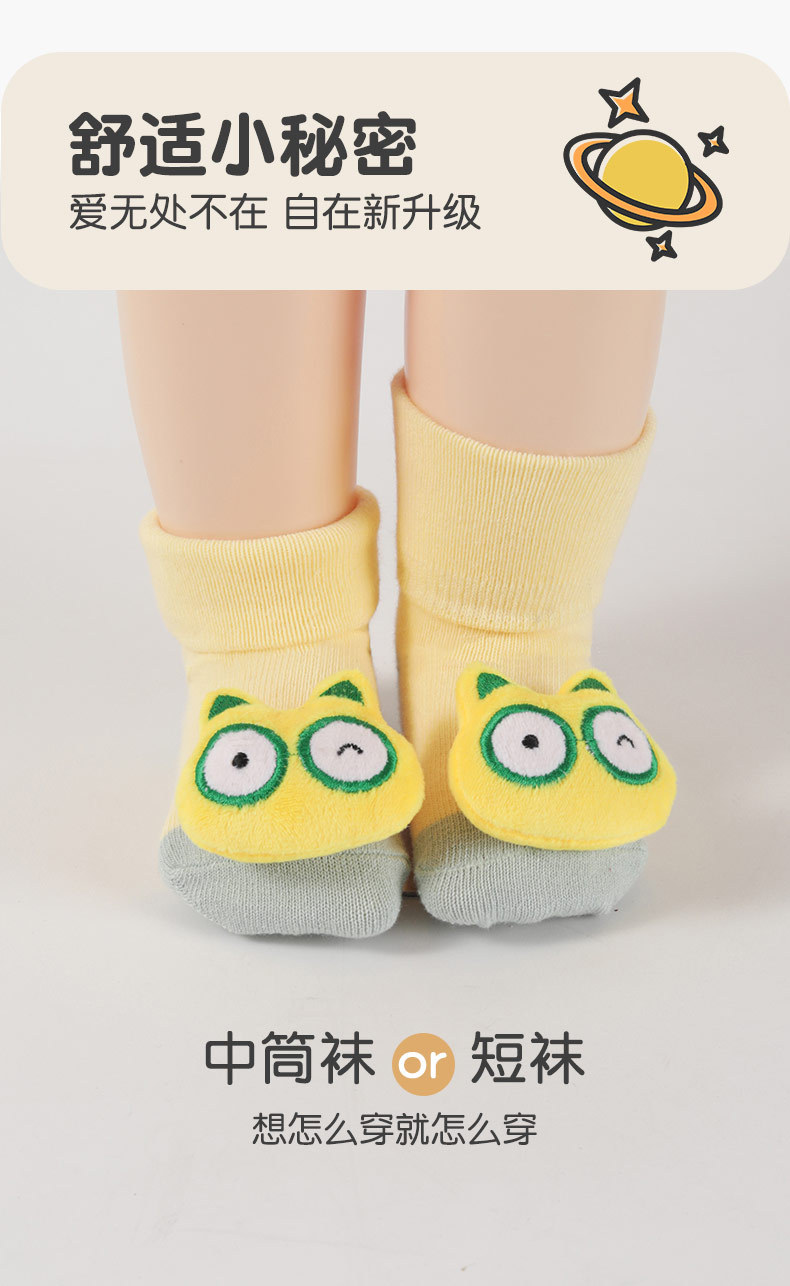 봄과 가을 신상 아기 양말 신생아 만화 미끄럼 방지 어린이 중간 길이 바닥 양말 귀여운 아기 인형 양말