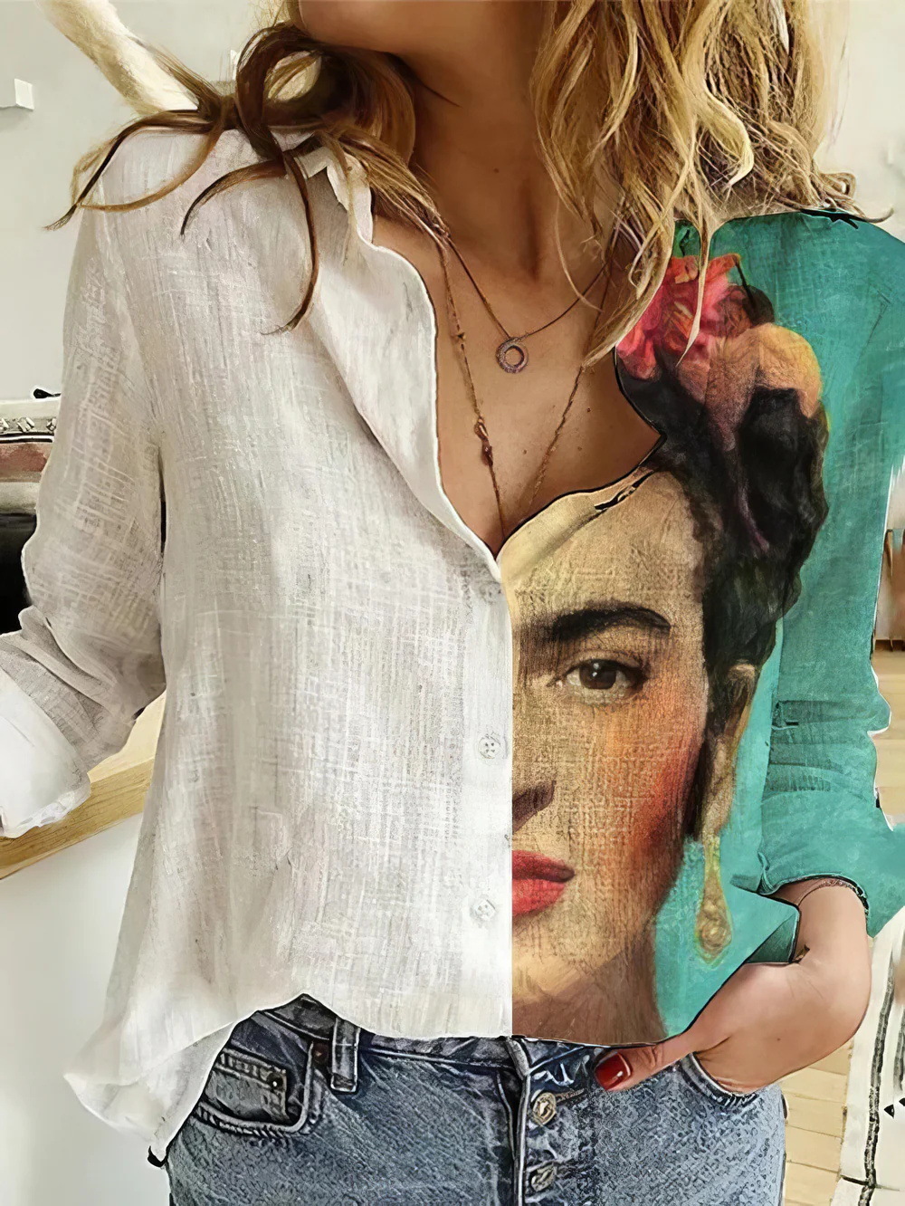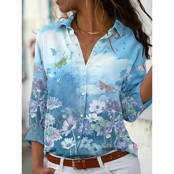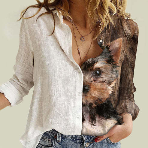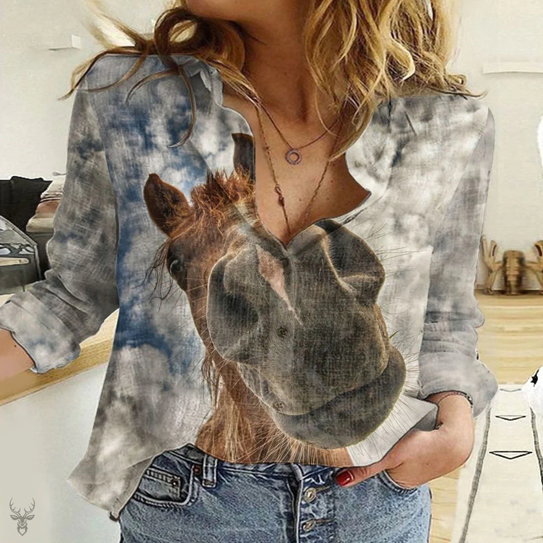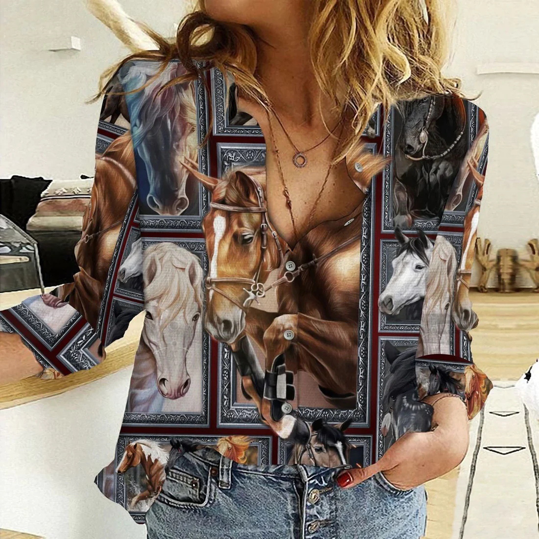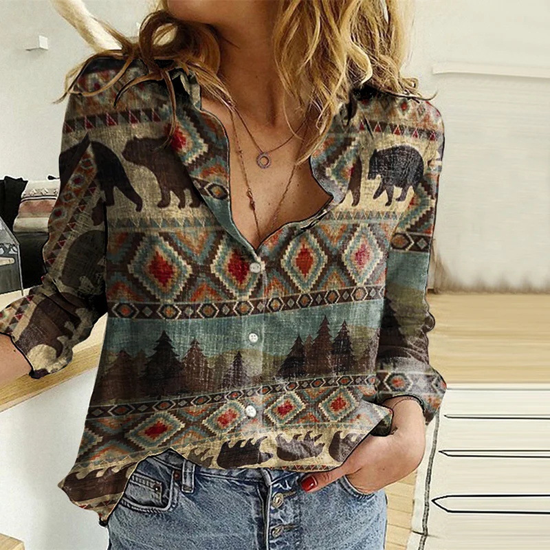 풀 샵 애니멀 프린트 긴팔 셔츠 여자의 탑 봄 새로운 양식 느슨한 플러스 사이즈 여자의 통근 셔츠스토어 가기