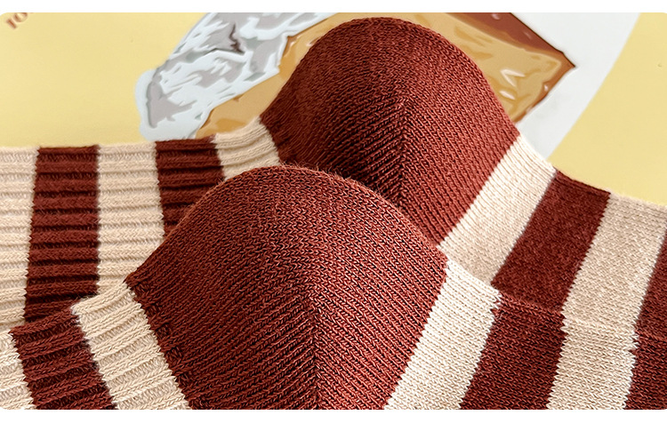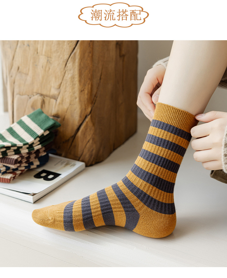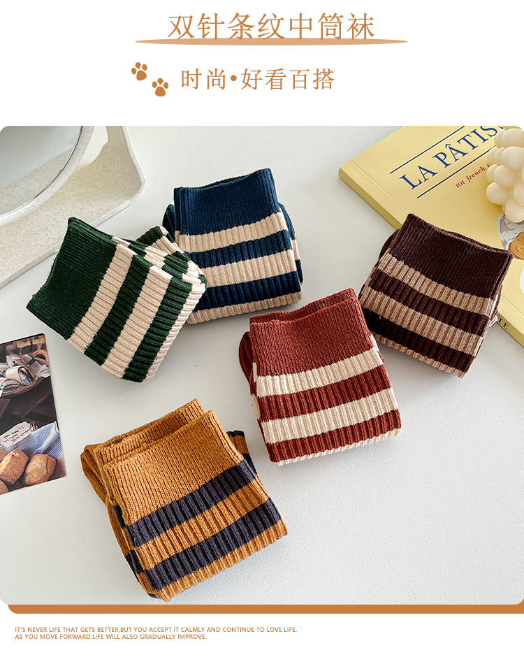 여성용 더블 니들 중목 양말 봄 여름 신상 레트로 스트라이프 롱 양말 여성용 컬러 블록 다용도 양말 도매