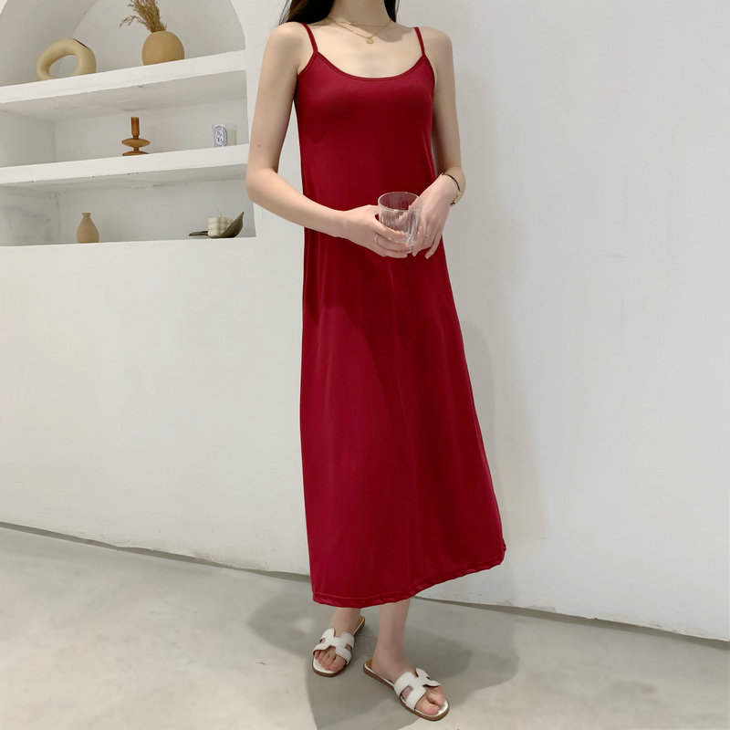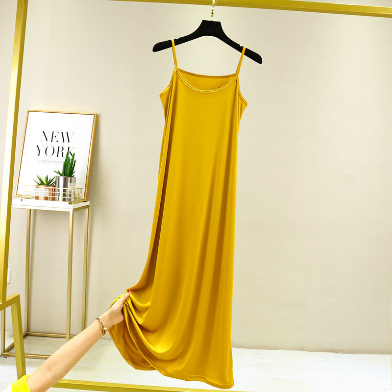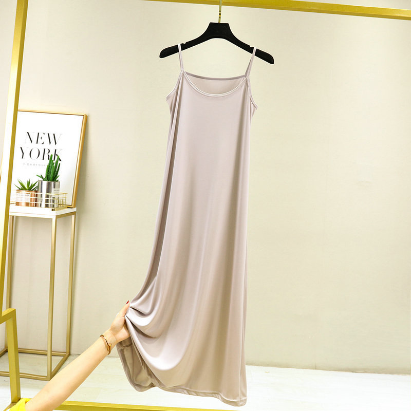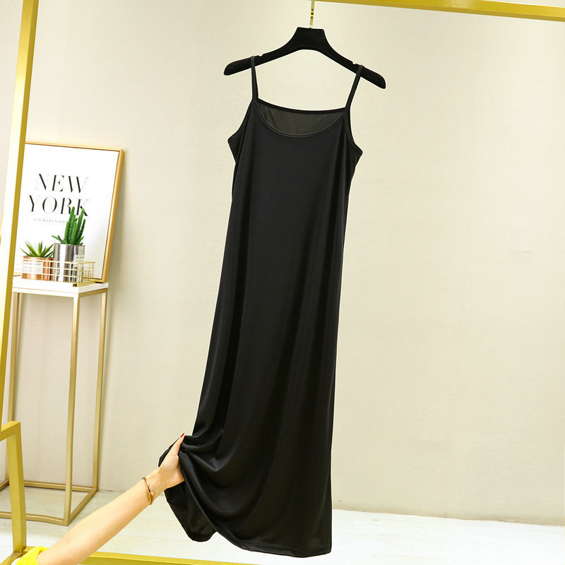 2023 새로운 실크 슬링 여성용 롱 원피스 블랙 내부 느슨한 롱 원피스 슬림핏 슬링 원피스
