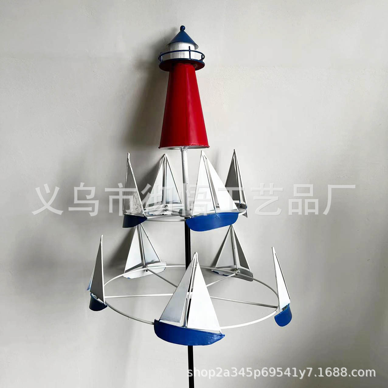 独立站新款金属铁艺旋转风车花园金属风车户外花园动能艺术风雕