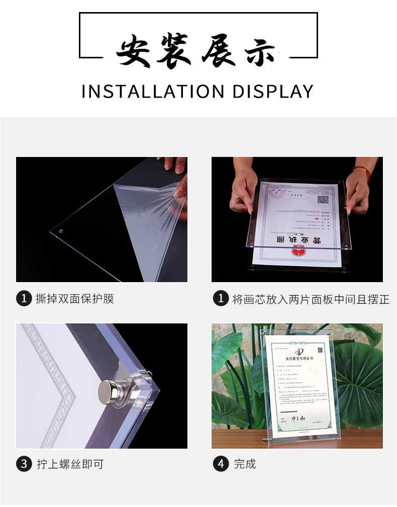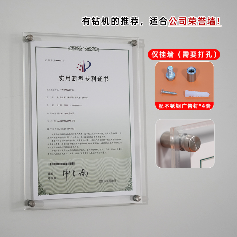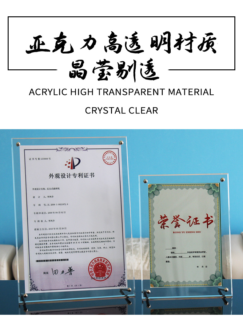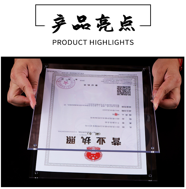 투명 아크릴 포토 프레임 테이블 a3 비즈니스 라이센스 프레임 a4 인증서 프레임 8K 액자 특허 벽 교수형 디스플레이 프레임