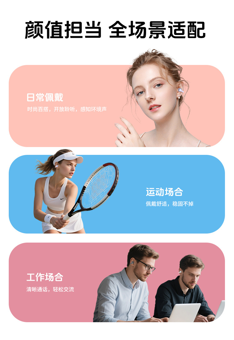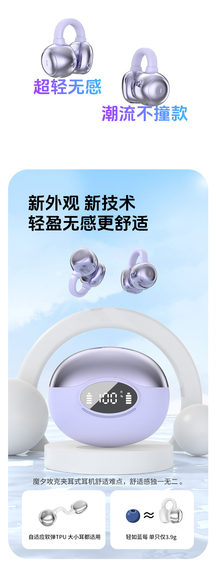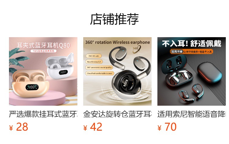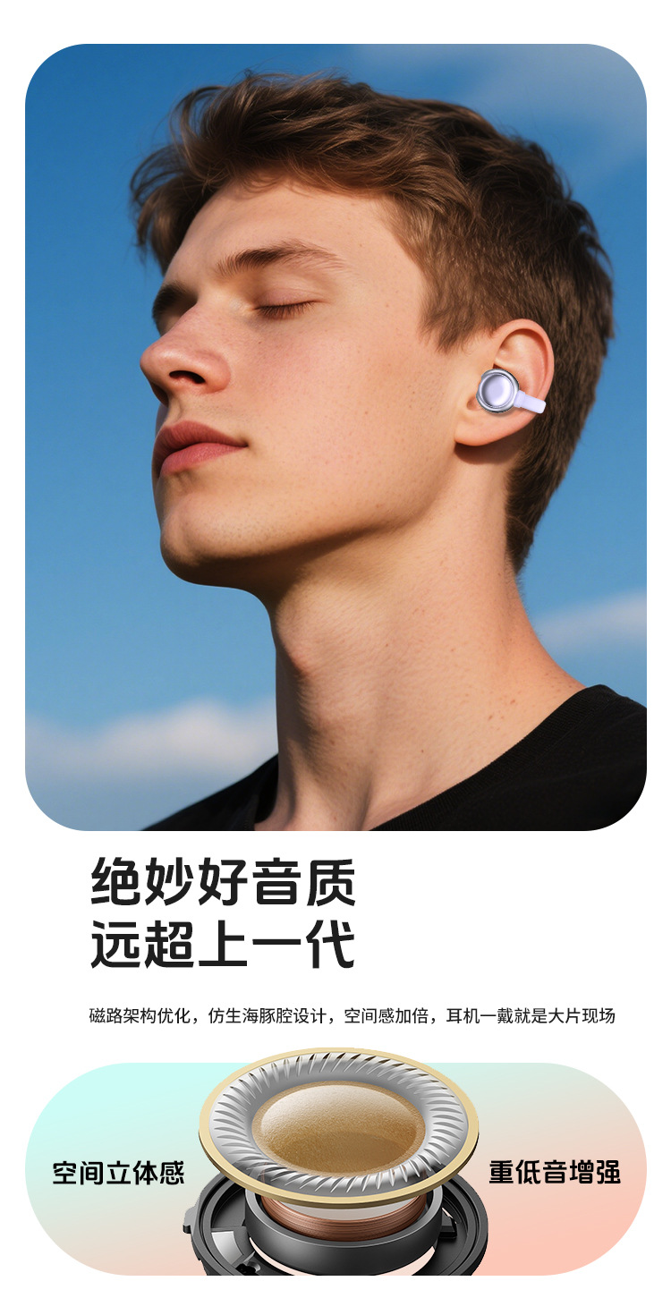 엄선된 스포츠 무선 블루투스 헤드셋, 소음 감소, 비골전도, 고품질, 대용량 배터리, 고가치 이어클립 헤드셋스토어 가기