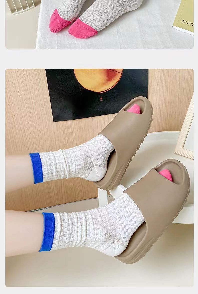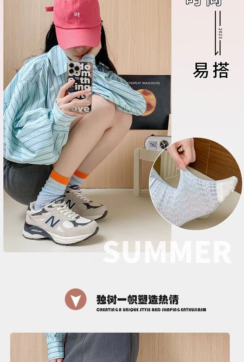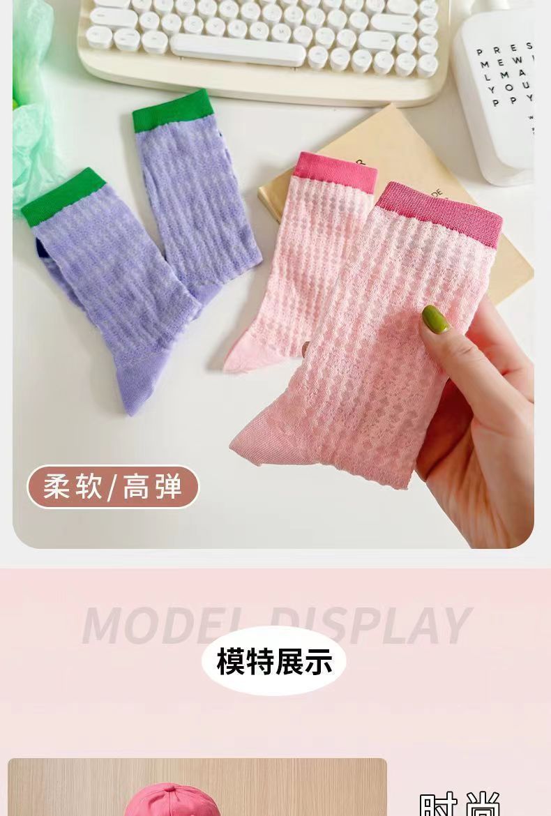 양말 여성용 스택 양말 봄과 여름 얇은 면 메쉬 색상 매칭 중간 길이 양말 사이버 인기 도파민 소녀 스택 양말