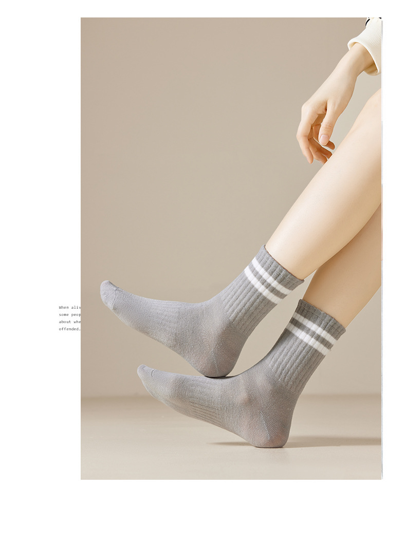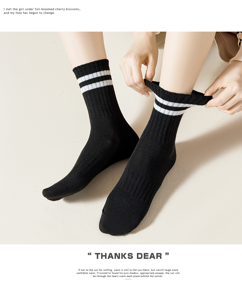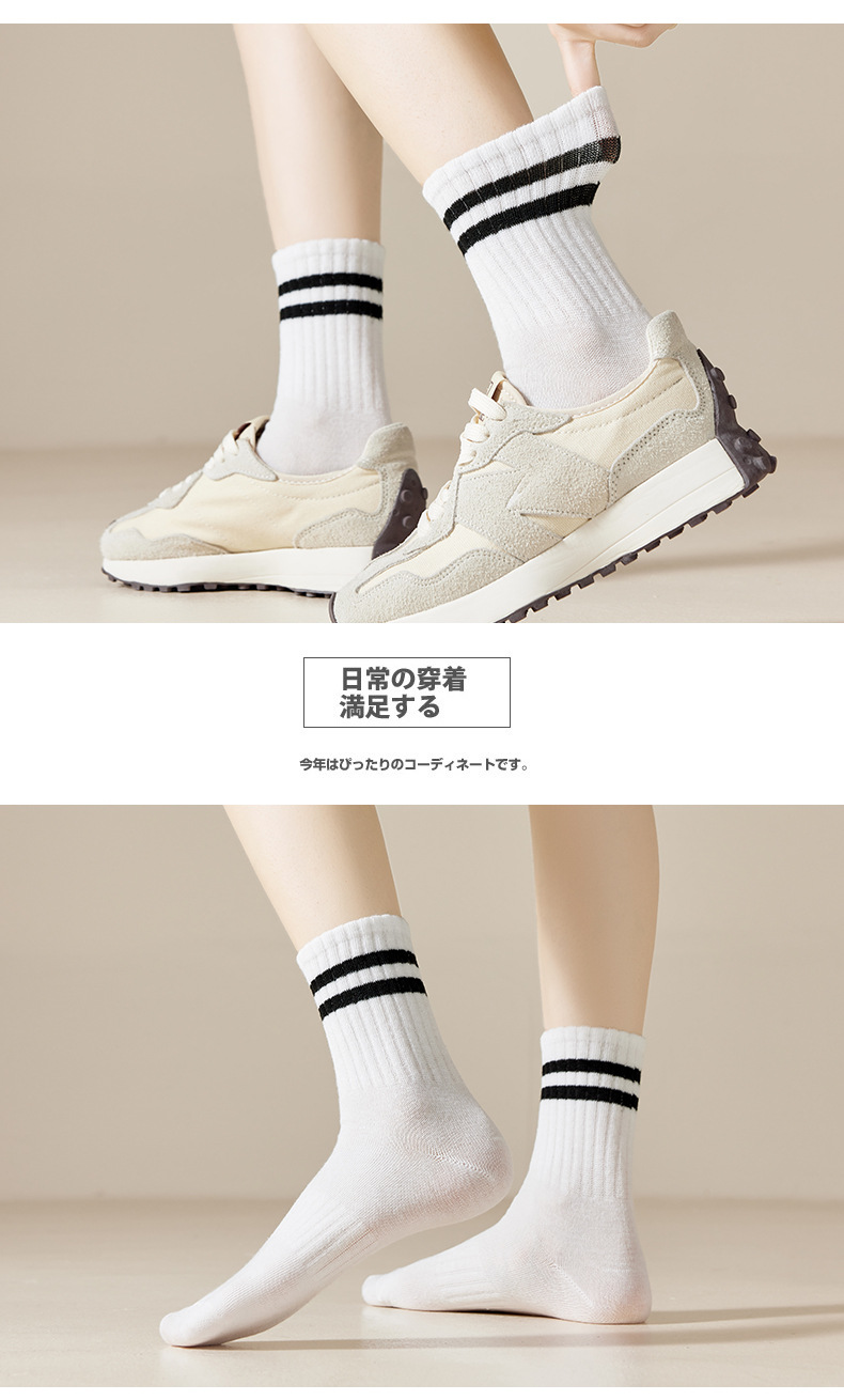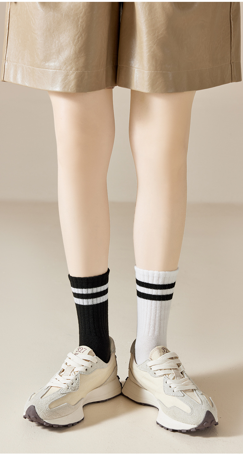 양말 여성용 가을 겨울 중간 길이 양말 여성용 일본식 단색 스택 Instagram 스타일 트렌디 한 스포츠 양말 여성용 흑백 긴 양말
