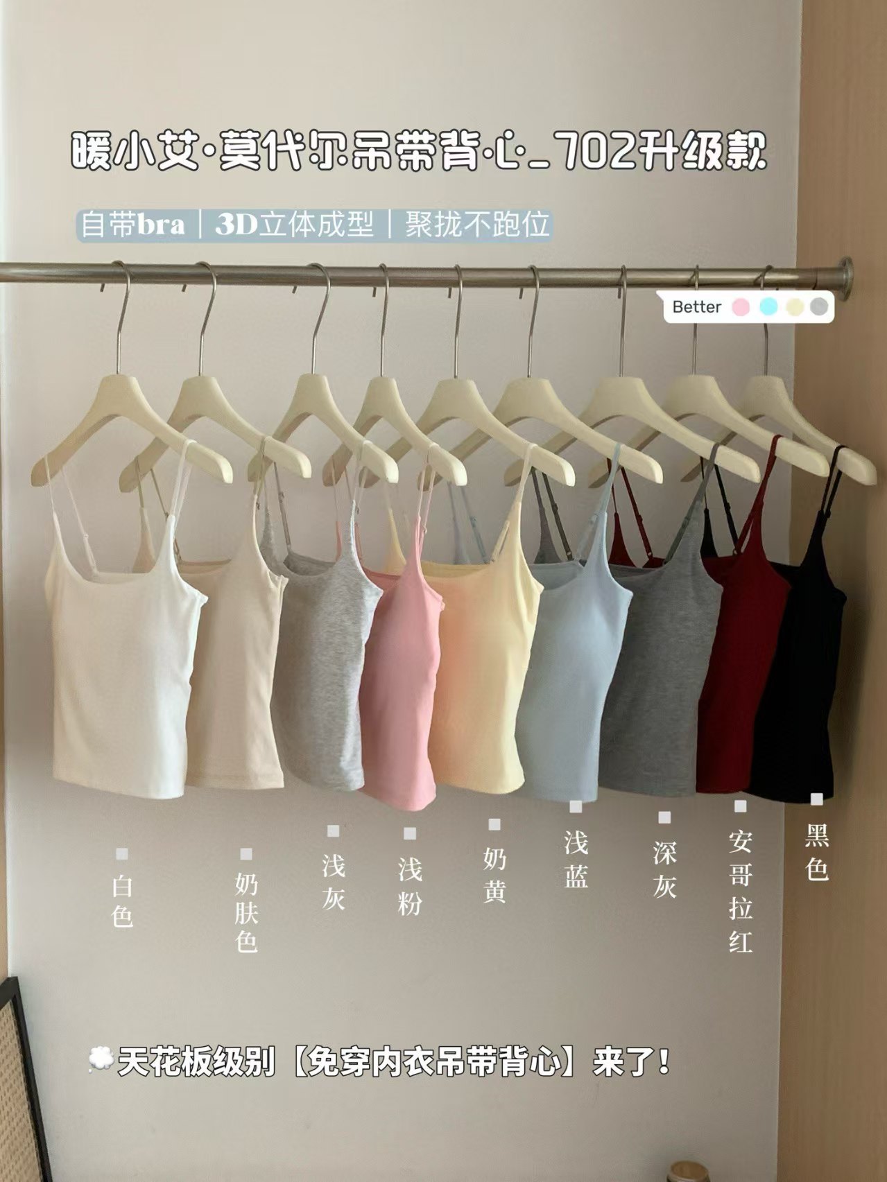 따뜻한 작은 목사 702 업그레이드 된 모달 캐미솔 통합 컵 가슴 패드가있는 모든 경기 캐미솔스토어 가기