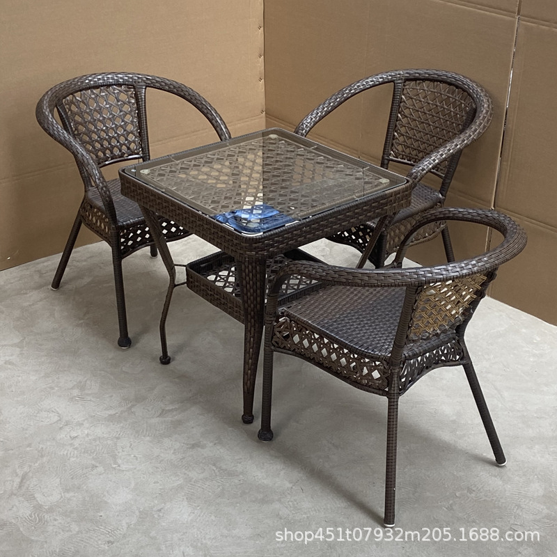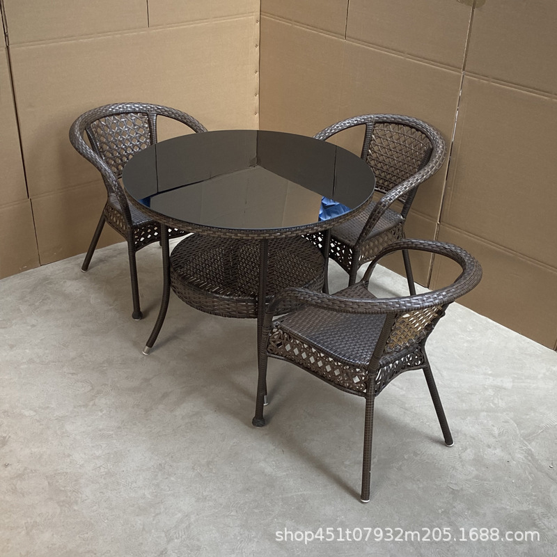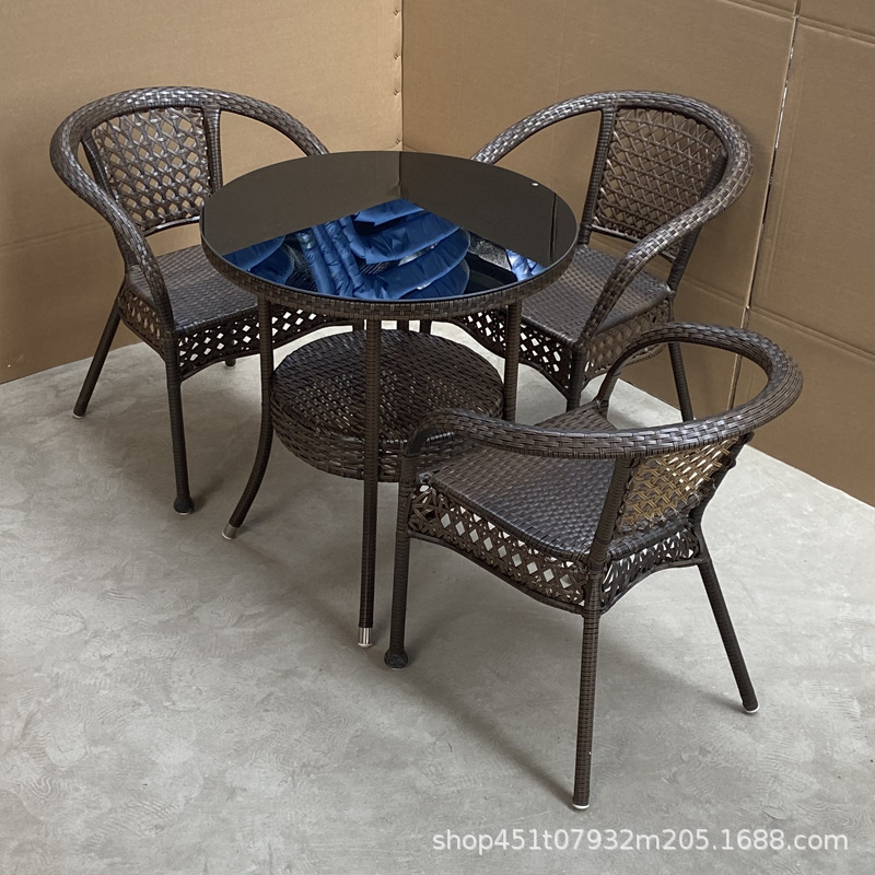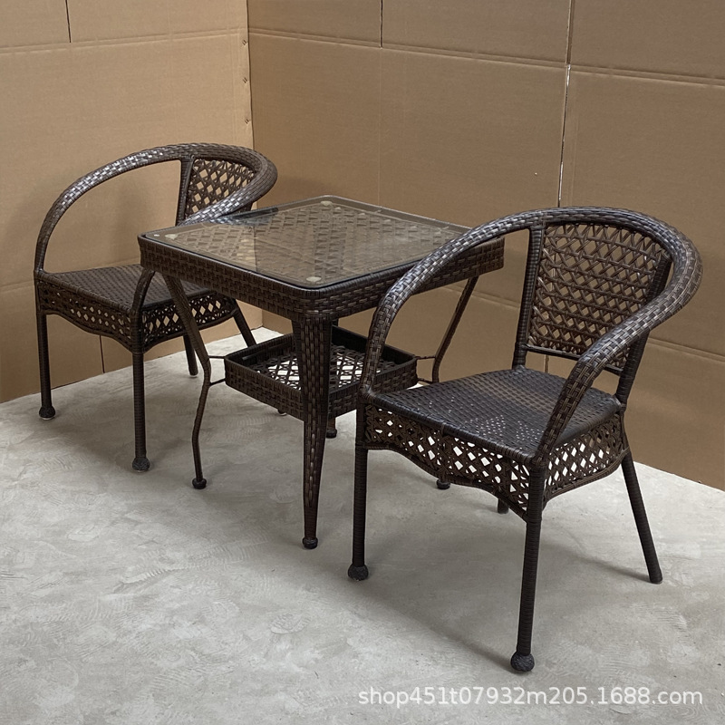발코니 등나무 의자 3 종 세트 레저 안뜰 야외 등받이 의자 등나무 같은 소재 짠 실내 식탁과 의자 자외선 차단제