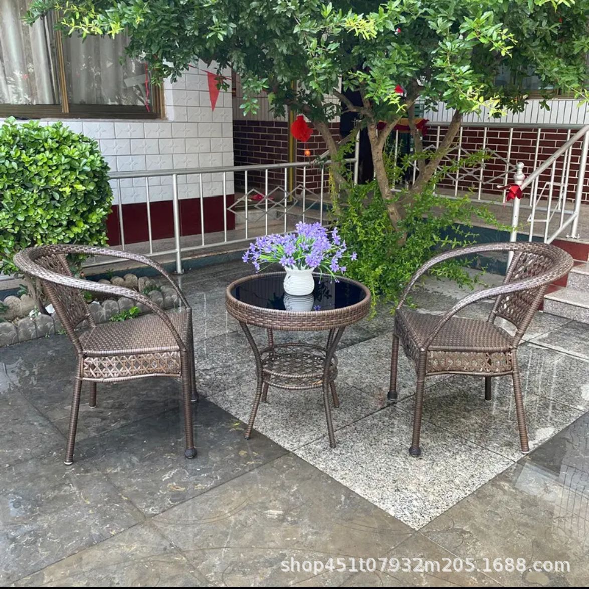발코니 등나무 의자 3 종 세트 레저 안뜰 야외 등받이 의자 등나무 같은 소재 짠 실내 식탁과 의자 자외선 차단제스토어 가기