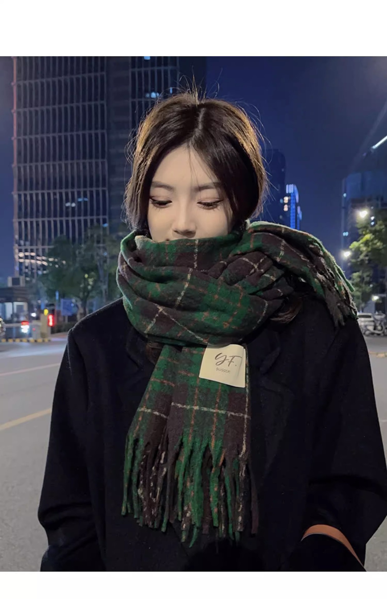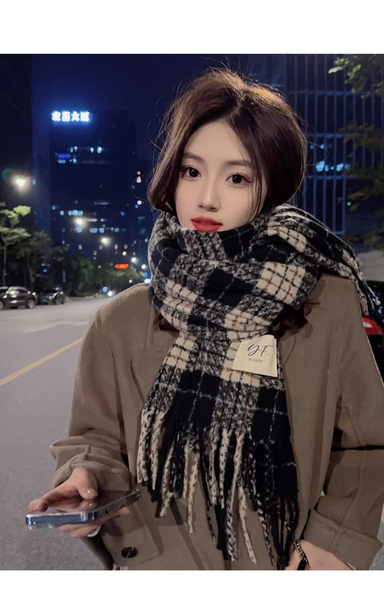 레트로 인터넷 연예인 격자 무늬 스카프 여자 겨울 한국식 모든 매치 따뜻한 긴 숄 이중 목적 학생 스카프스토어 가기