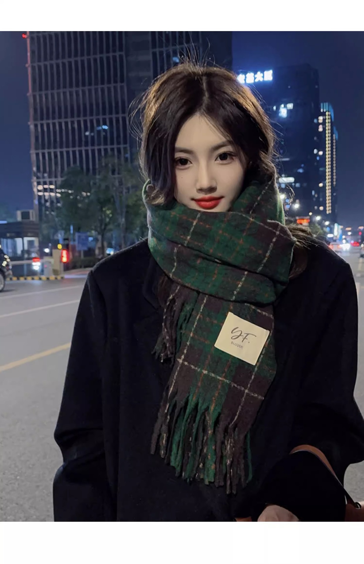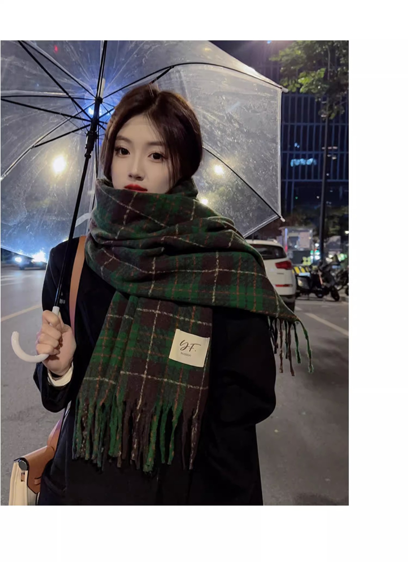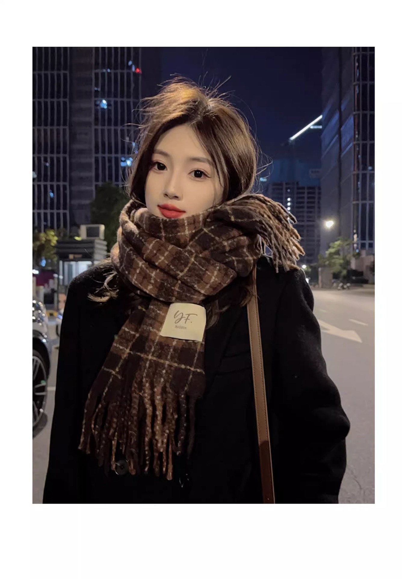 레트로 인터넷 연예인 격자 무늬 스카프 여자 겨울 한국식 모든 매치 따뜻한 긴 숄 이중 목적 학생 스카프
