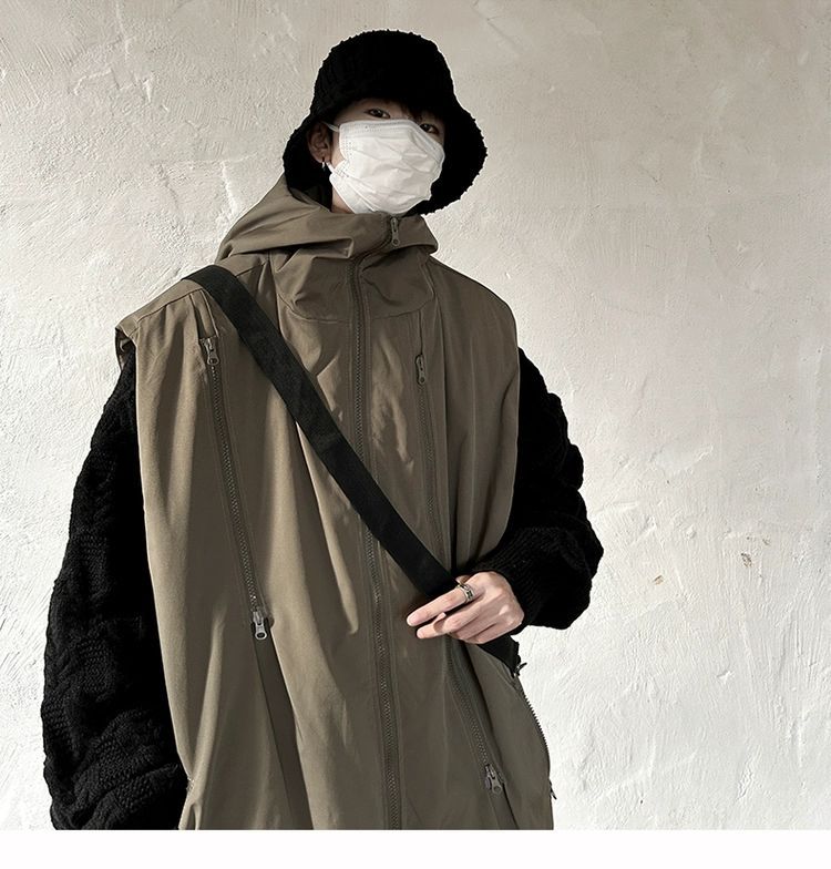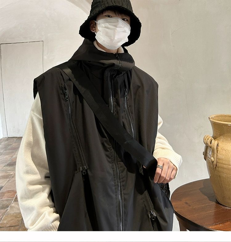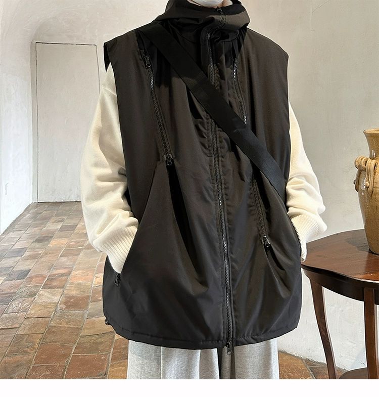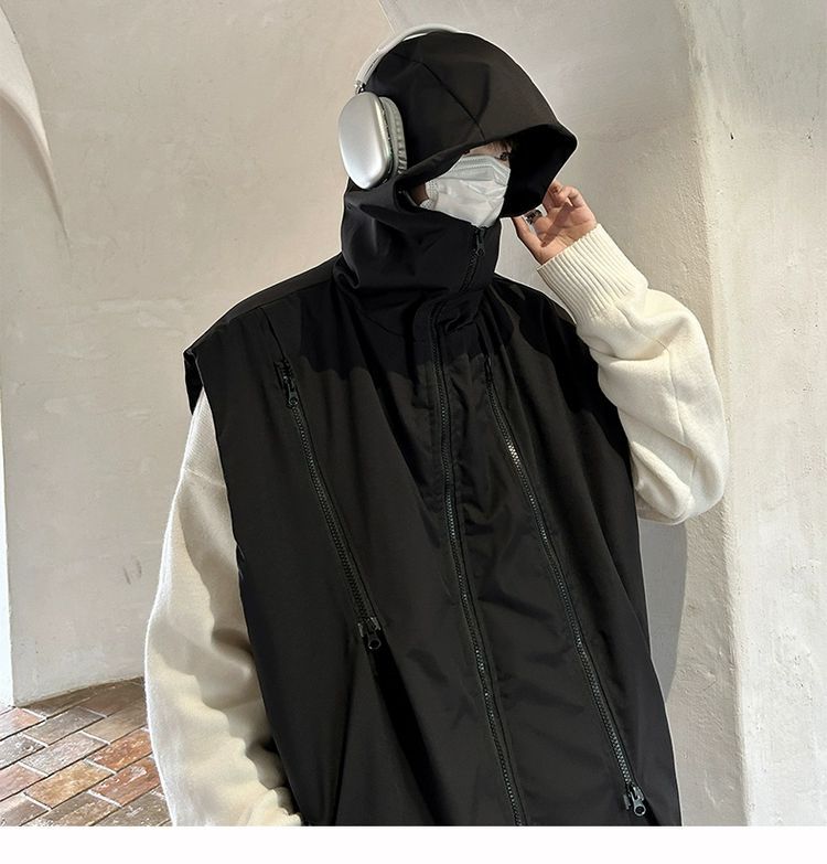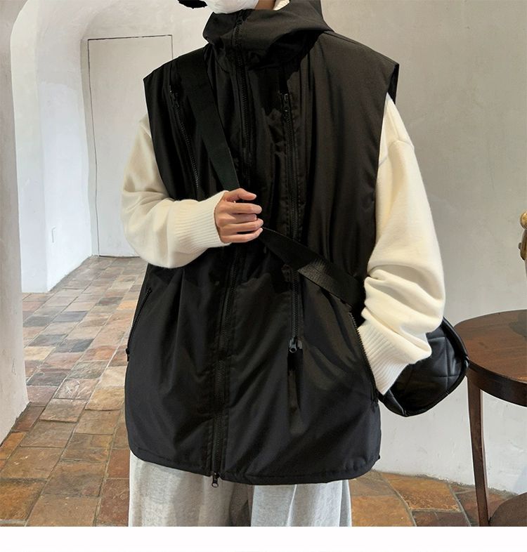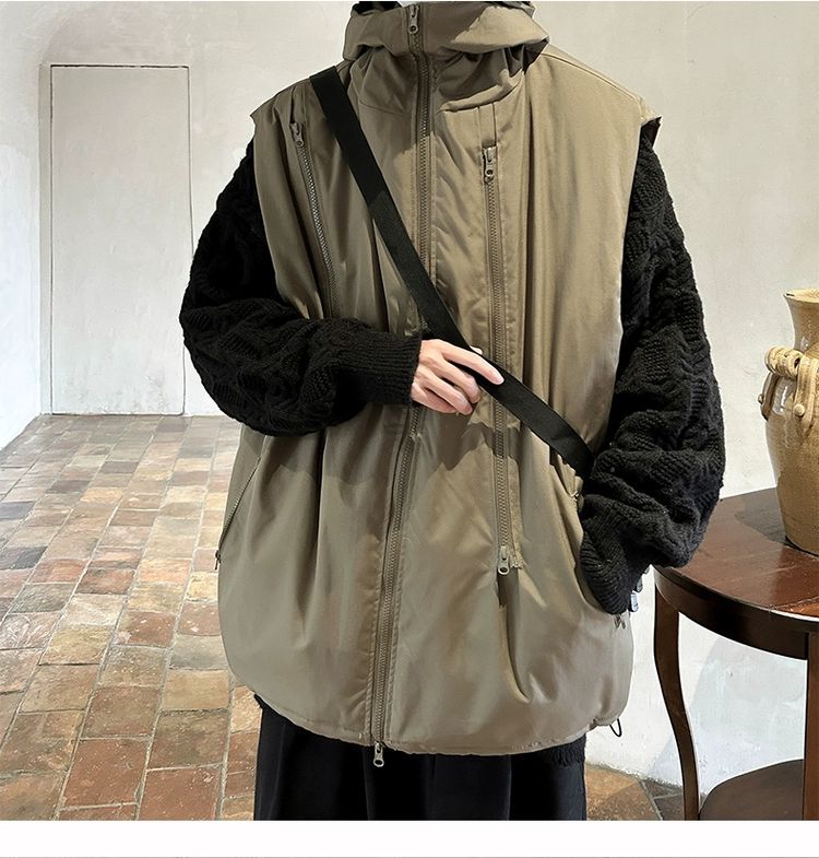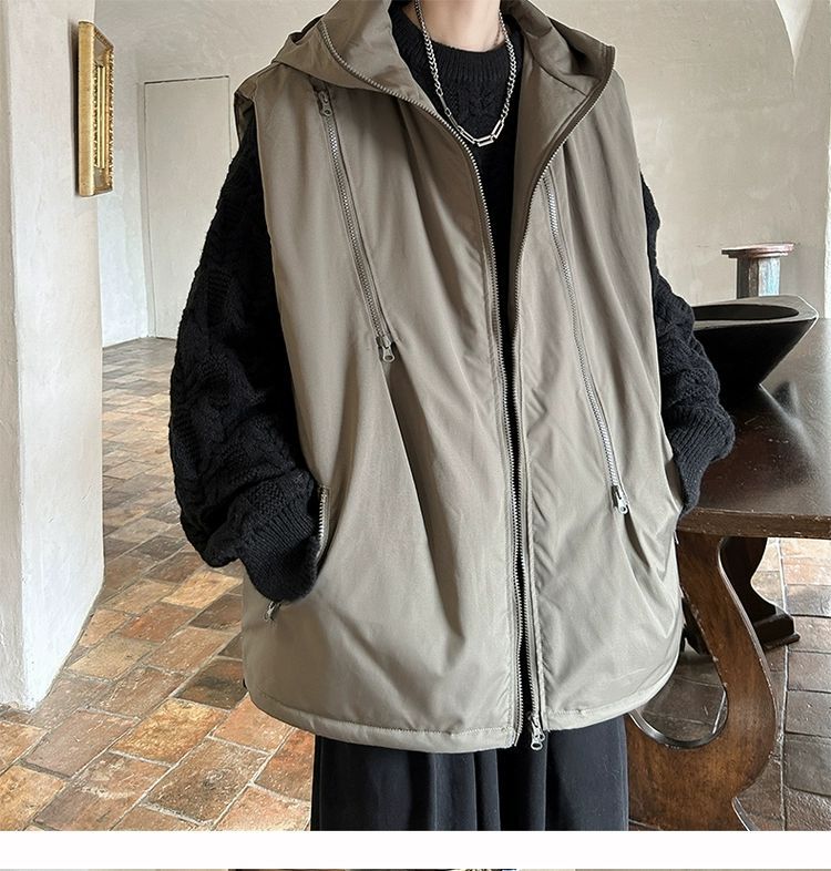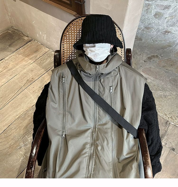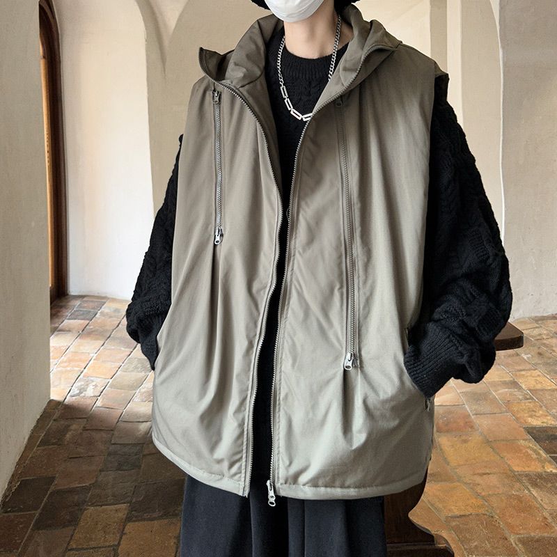 아메리칸 스타일 충전 의류 면 조끼 남자의 겨울 하이 스트리트 두꺼운 디자인 민소매 허리띠 패션 브랜드 후드 작업 재킷