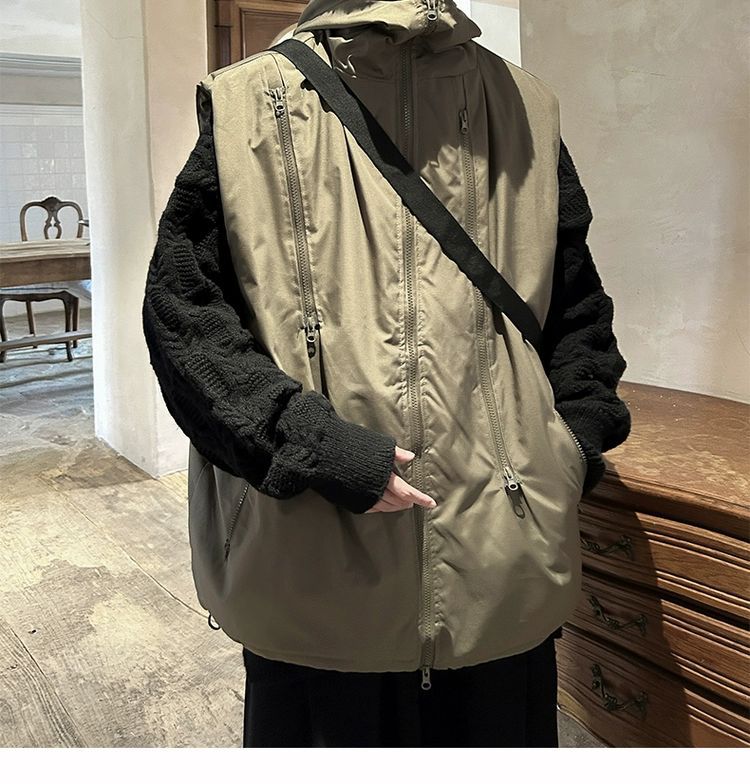 아메리칸 스타일 충전 의류 면 조끼 남자의 겨울 하이 스트리트 두꺼운 디자인 민소매 허리띠 패션 브랜드 후드 작업 재킷스토어 가기