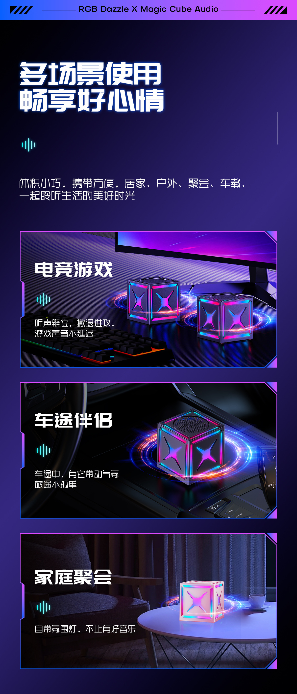 블랙 워리어 고음질 서브우퍼 무선 블루투스 스피커, 7색 조명 서브우퍼, 휴대용 무선 큐브 스피커스토어 가기