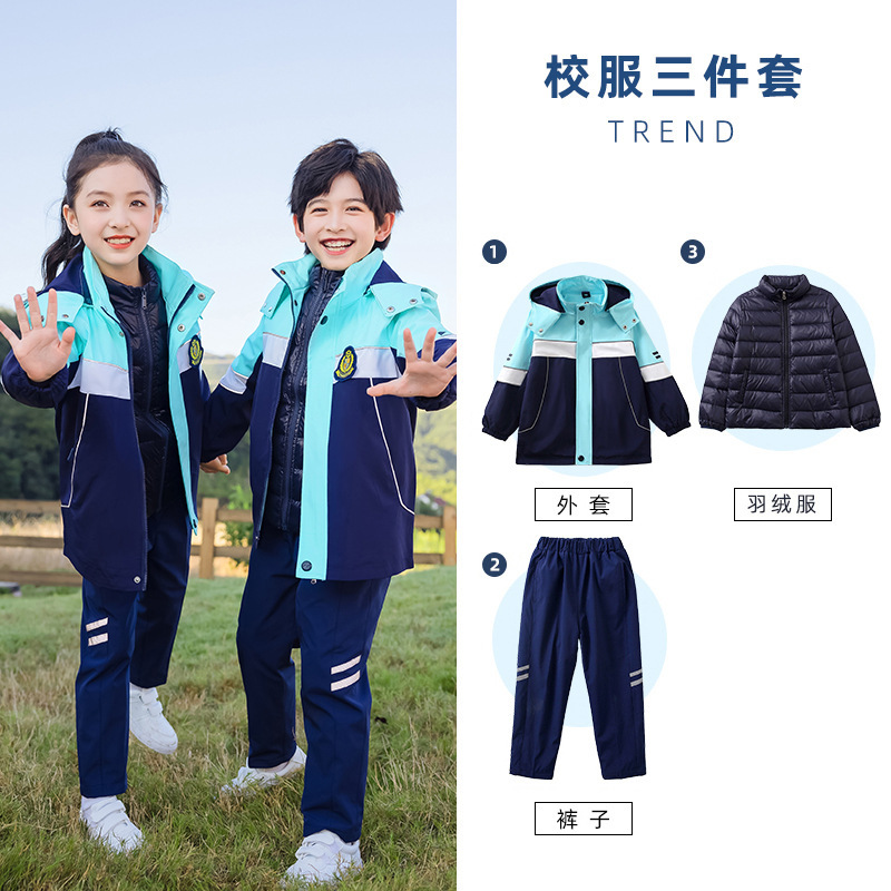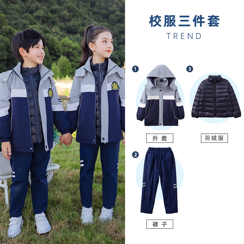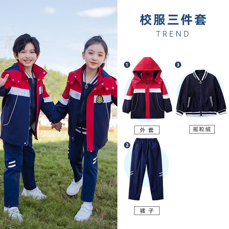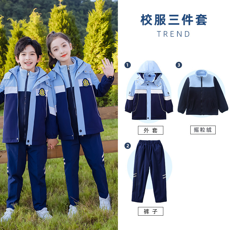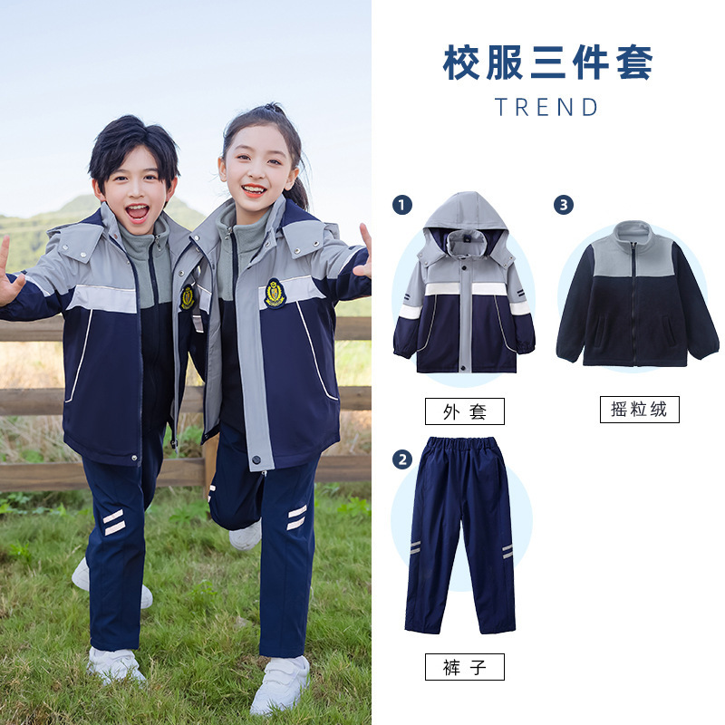 초등학교 교복 러쉬 옷 겨울 세트 3 종 세트 분리형 스포츠 게임 봄과 가을 어린이 교실 옷 유치원복