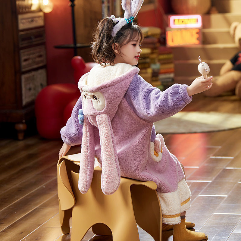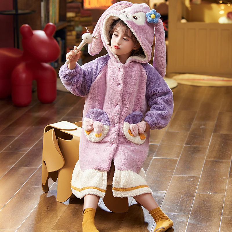 어린이 잠옷 소녀 겨울 아기의 산호 양털 목욕 가운 대형 어린이 기모 두꺼운 플란넬 잠옷 가정 의류스토어 가기