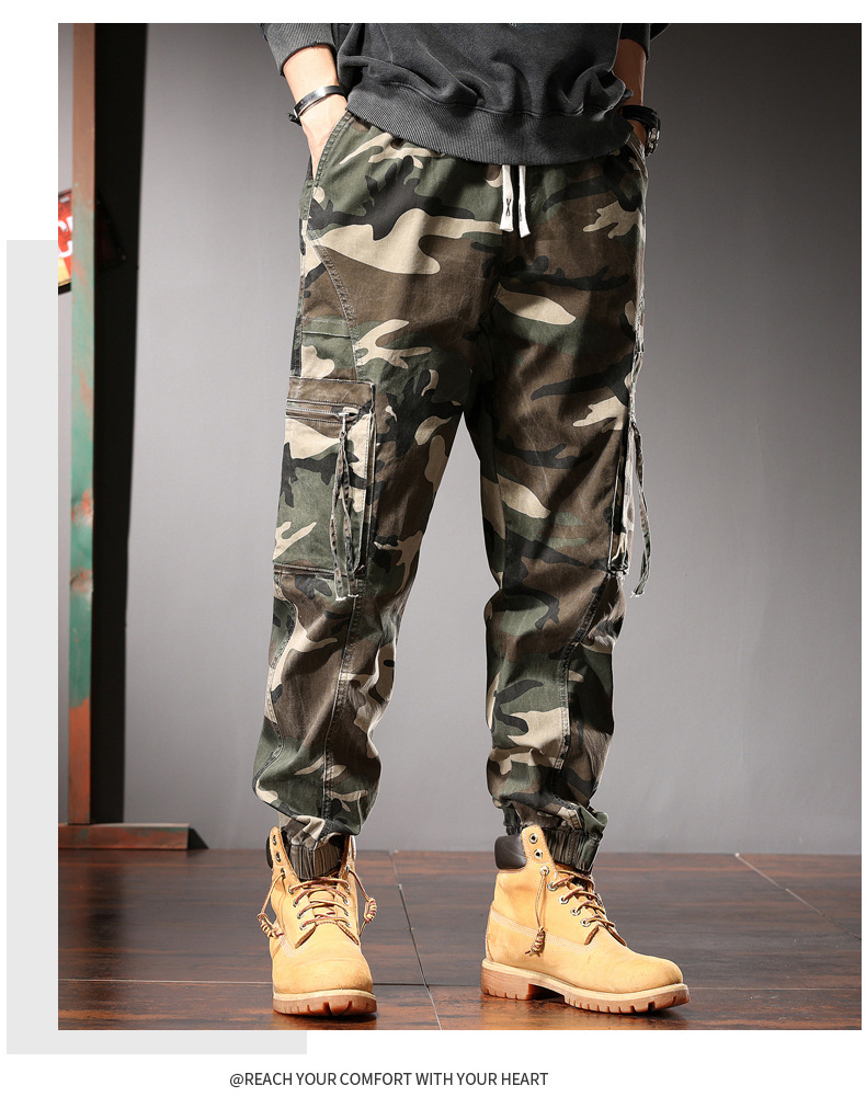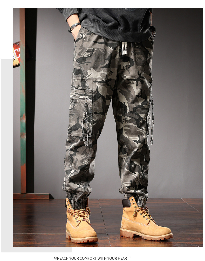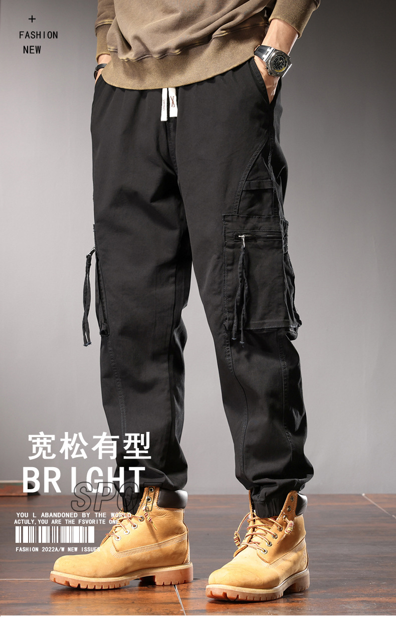1319 | 플러스 사이즈 남자의 가을과 겨울 새로운 바지 느슨한 플러스 사이즈 타이드 브랜드 멀티 포켓 발가락 캐주얼 바지
