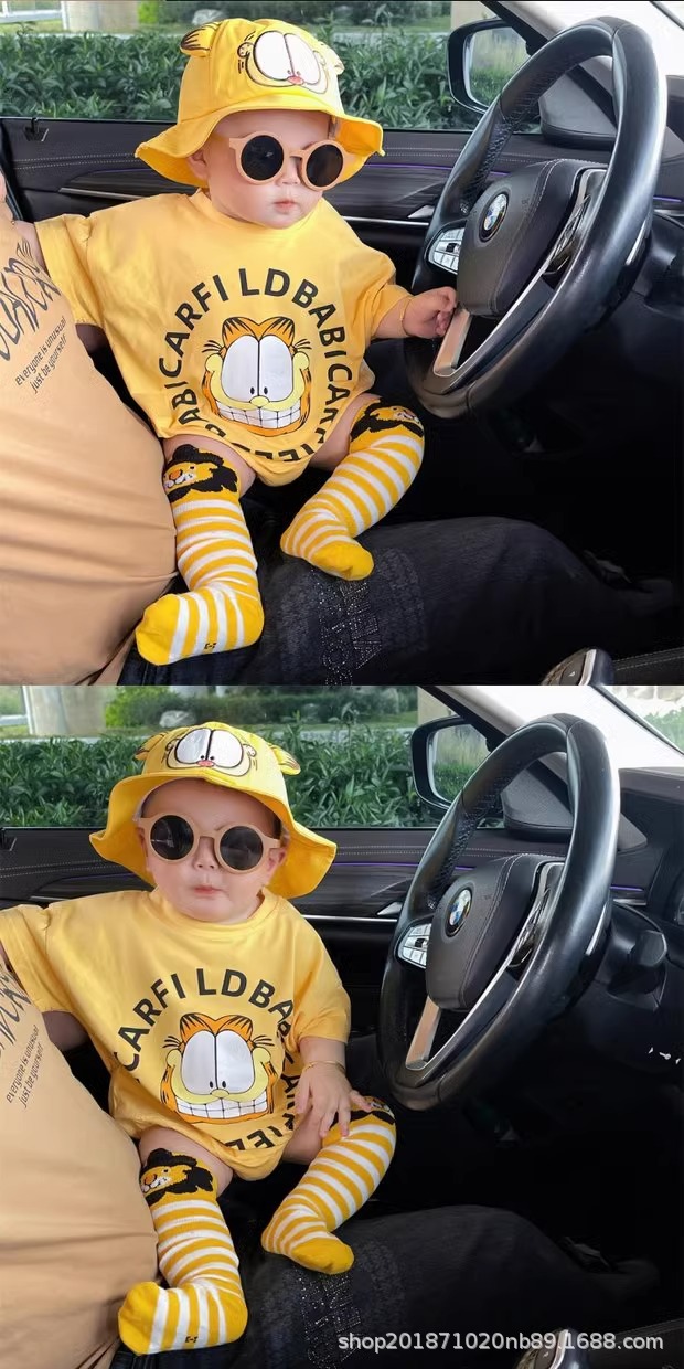 아기 여름 착용 얇은 귀여운 가필드 가방 뚱뚱한 옷 남자와 여자를위한 삼각형 등반 세트스토어 가기