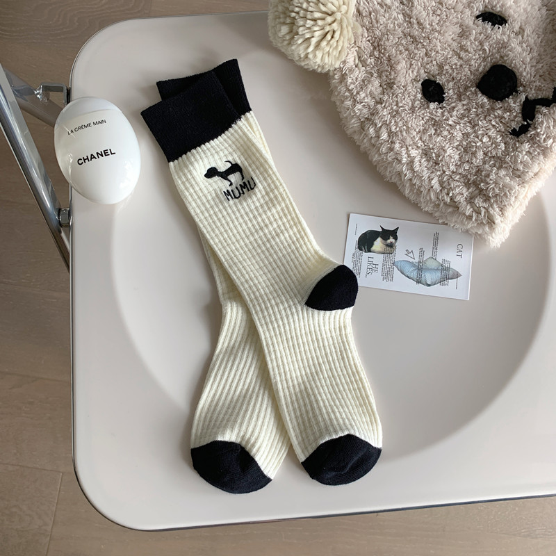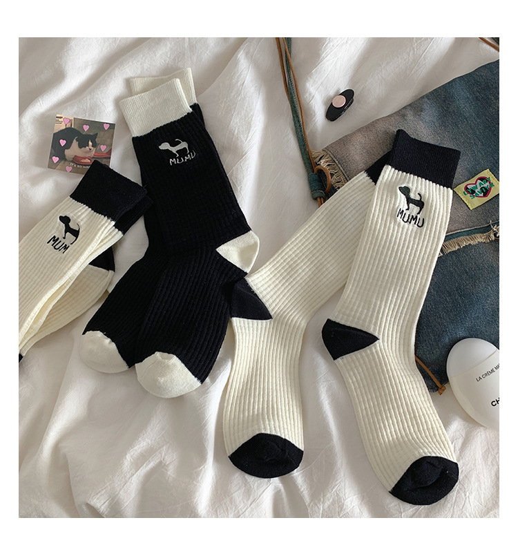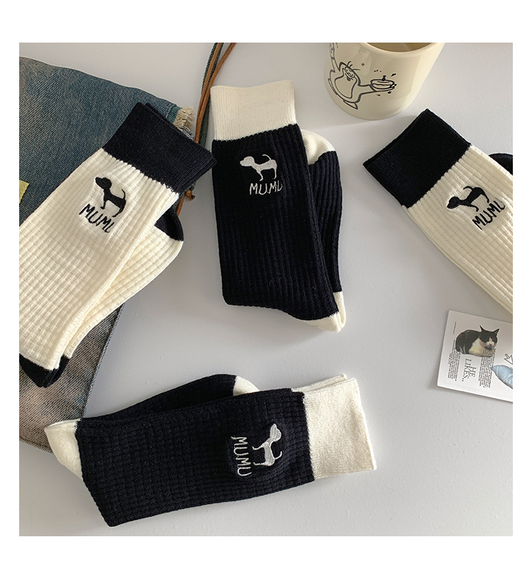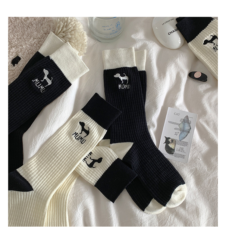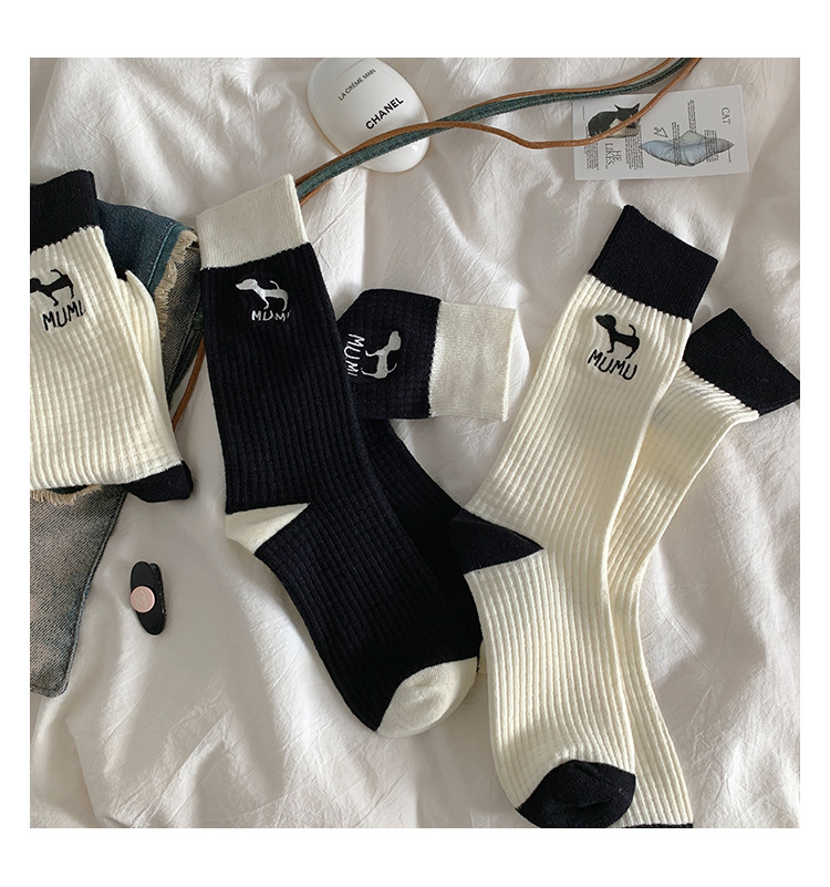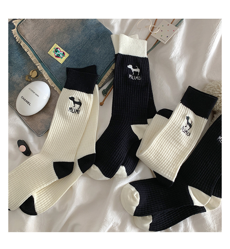 양말 여성용 중간 길이 양말 가을과 겨울 일본면 양말 강아지 자수 일본식 귀여운 학업 스타일 올매치 더미 스타킹