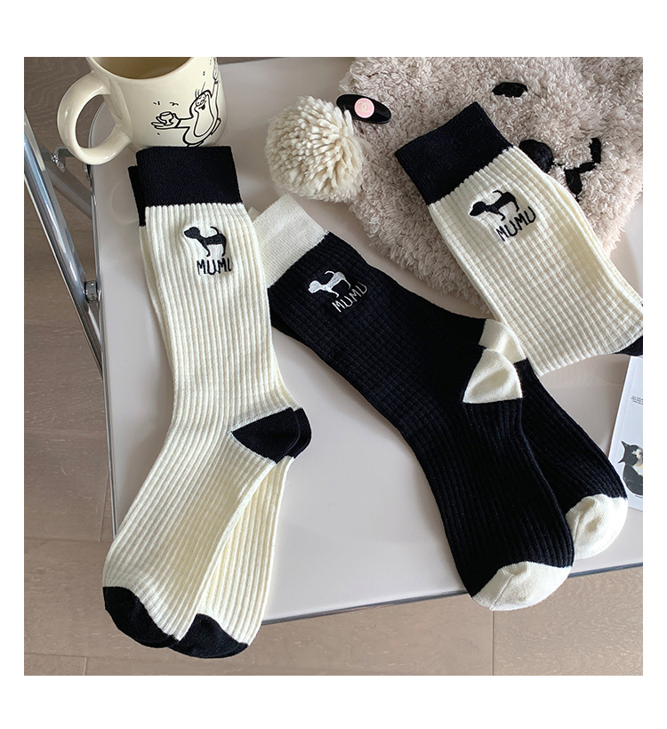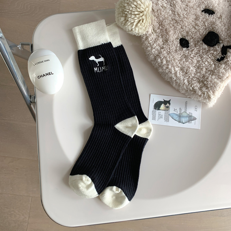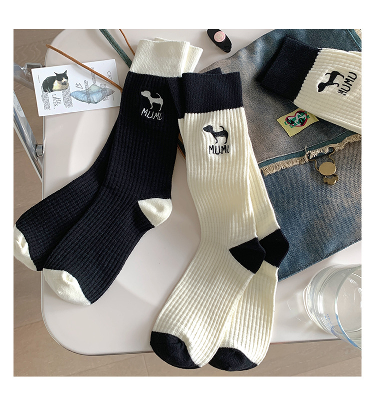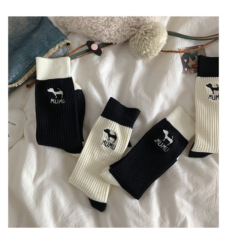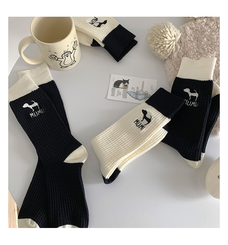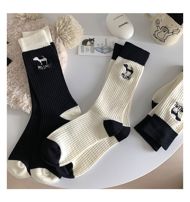 양말 여성용 중간 길이 양말 가을과 겨울 일본면 양말 강아지 자수 일본식 귀여운 학업 스타일 올매치 더미 스타킹