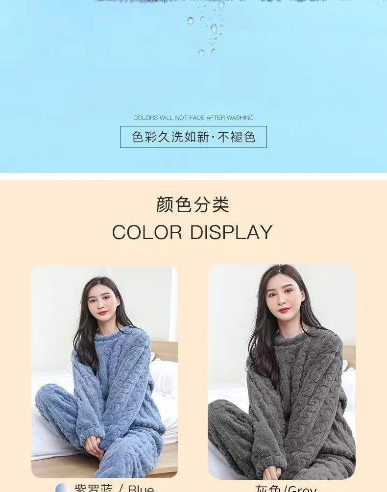 가을과 겨울 새로운 자카드 면 벨벳 잠옷 여자의 플란넬 두꺼운 긴 소매 가정 옷 커플의 겉옷 세트스토어 가기