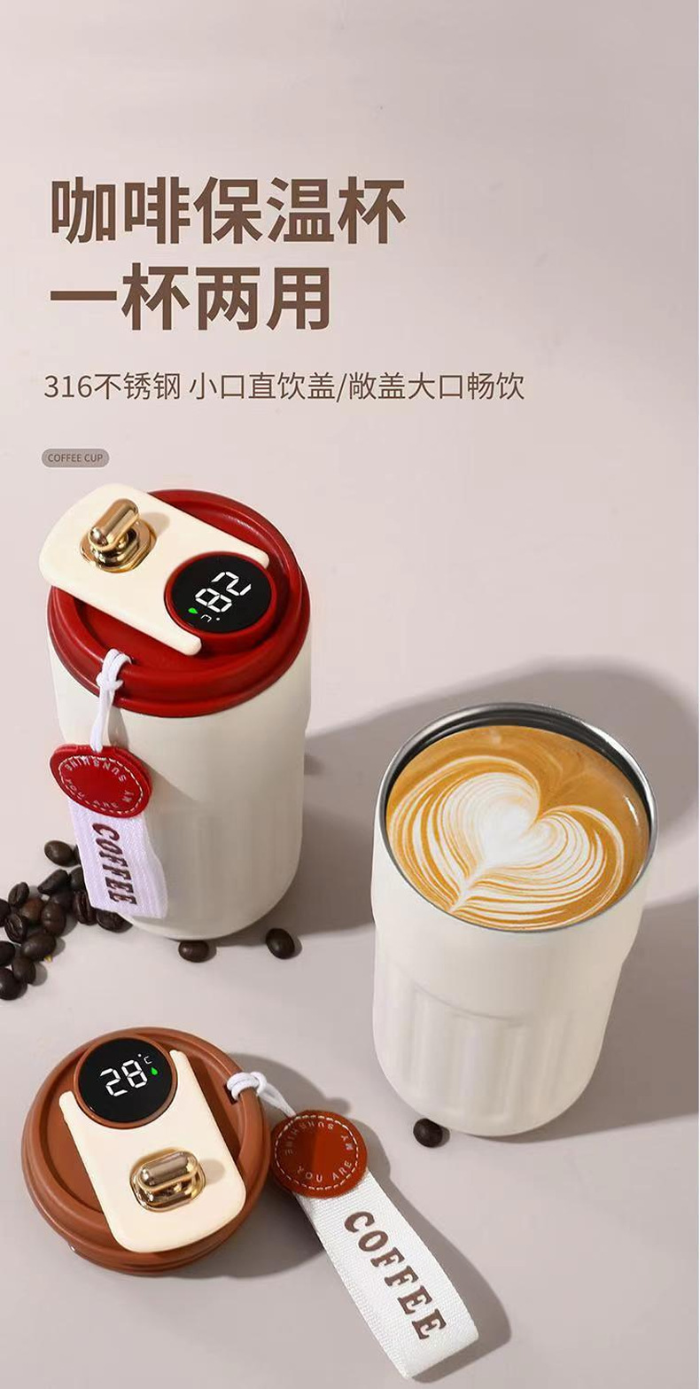 새로운 항목 럭셔리 지능형 따뜻한 디스플레이 316 스테인레스 스틸 커피 컵 보온병 컵 휴대용 직접 마시는 자동차 컵 동반 컵