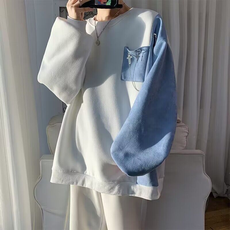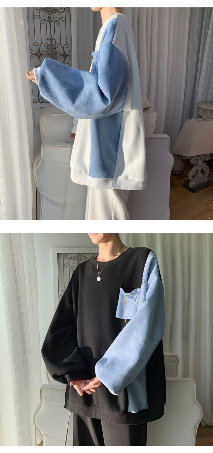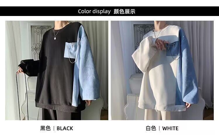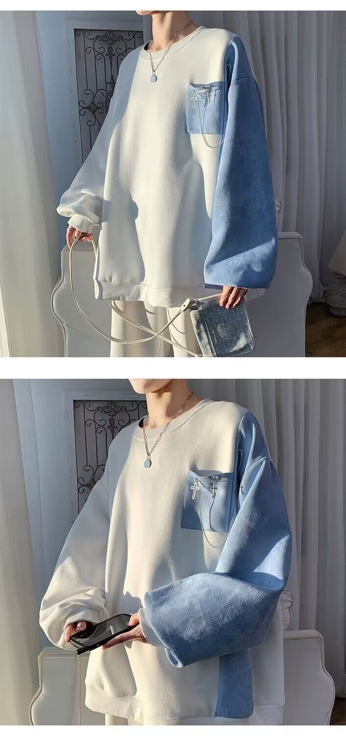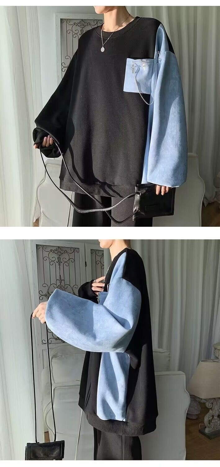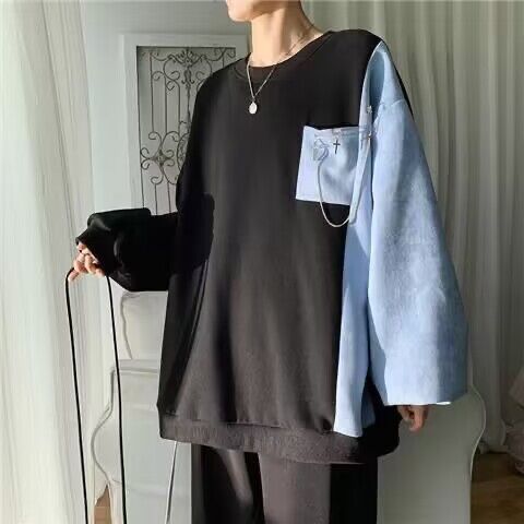 일본의 도시 소년 스티칭 스웨트 셔츠 남자의 가을 틈새 디자인 콩라인 컬러 탑 오버 사이즈 유행 브랜드 재킷스토어 가기