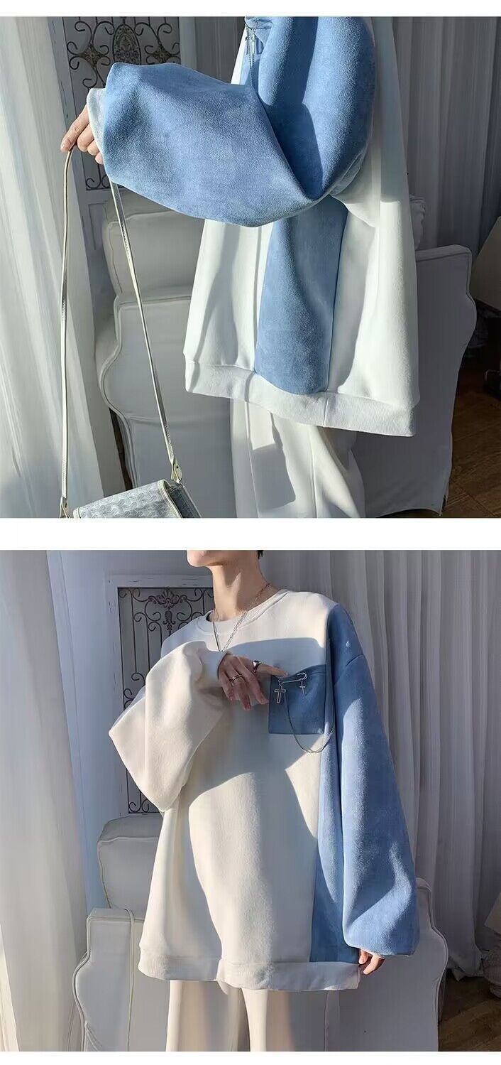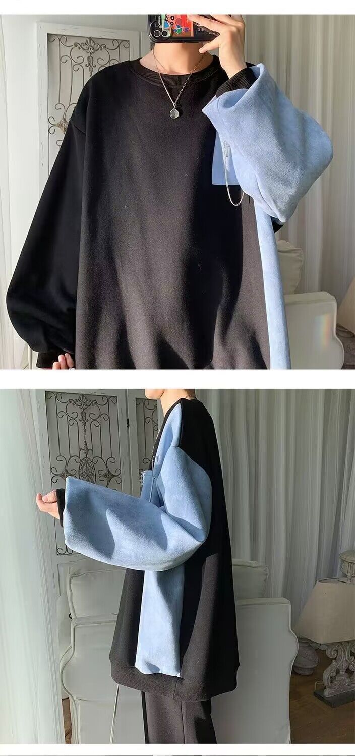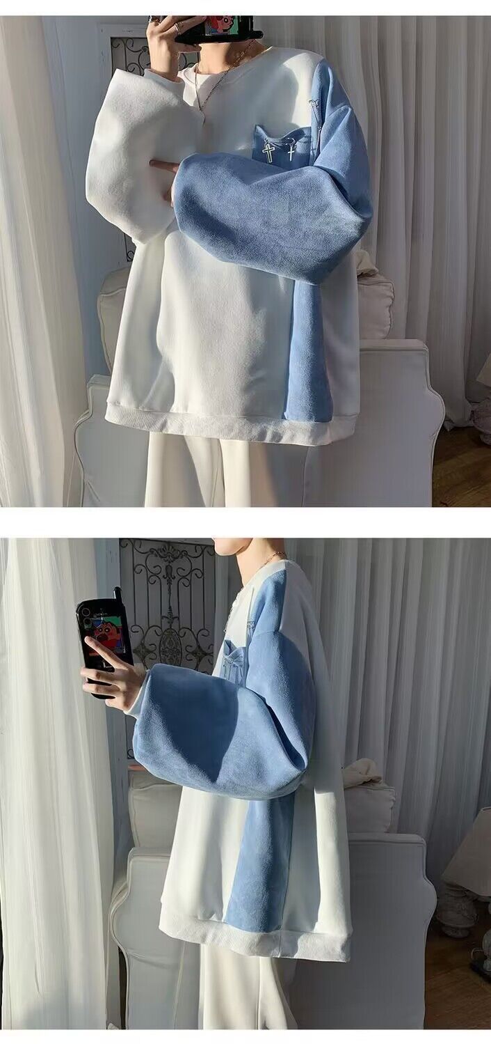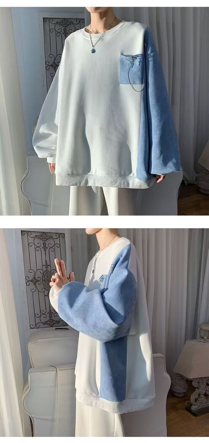 일본의 도시 소년 스티칭 스웨트 셔츠 남자의 가을 틈새 디자인 콩라인 컬러 탑 오버 사이즈 유행 브랜드 재킷스토어 가기