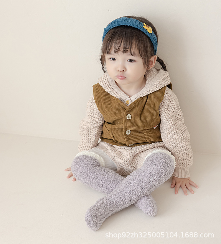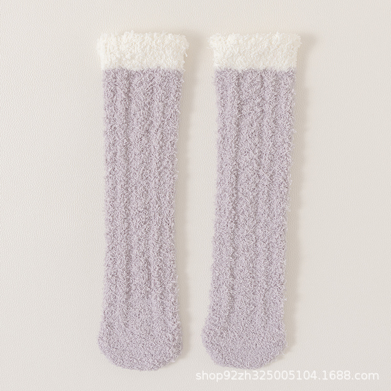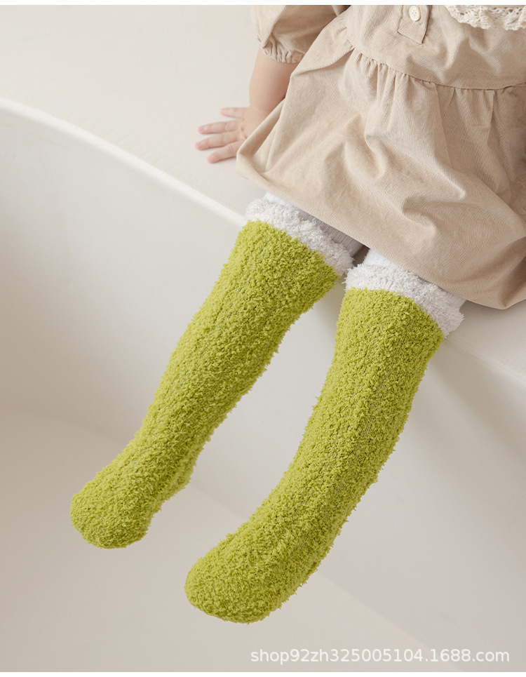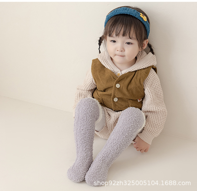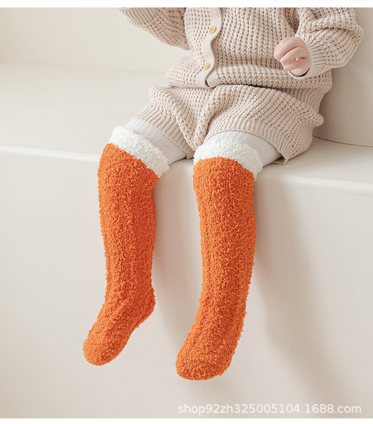 아기 양말 가을과 겨울 긴 튜브 산호 양털 바닥 양말 신생아 유아 중간 튜브 무릎 겨울 두꺼운 따뜻한