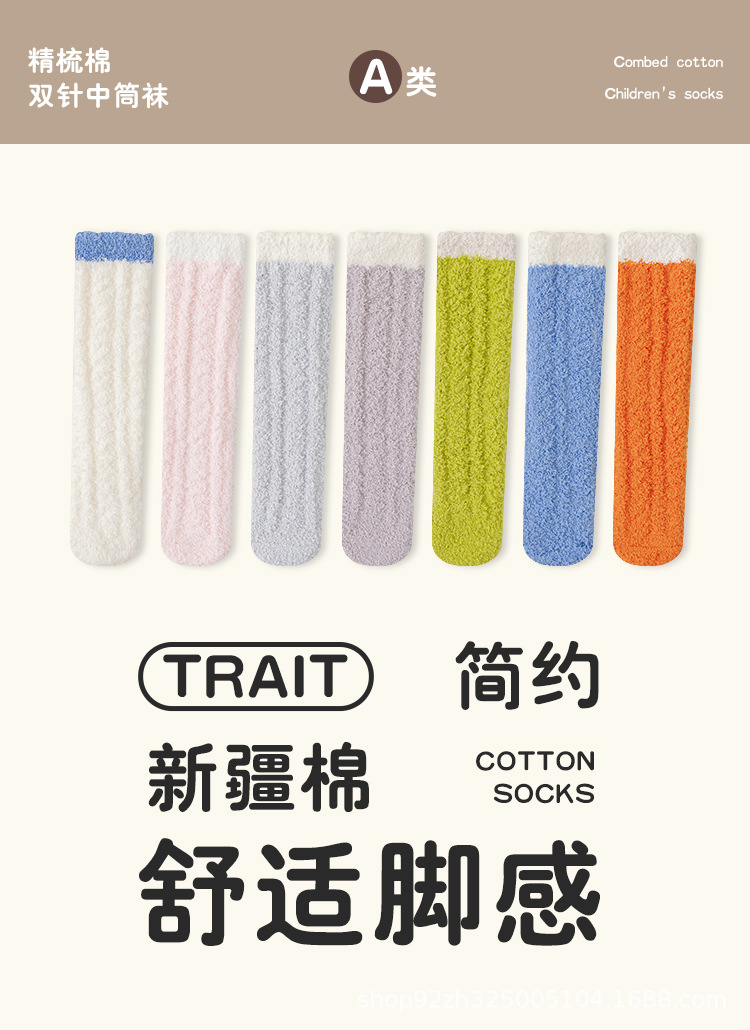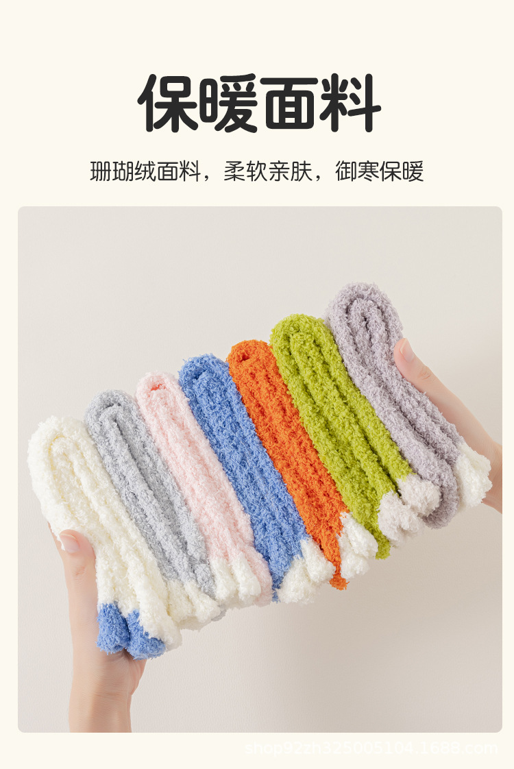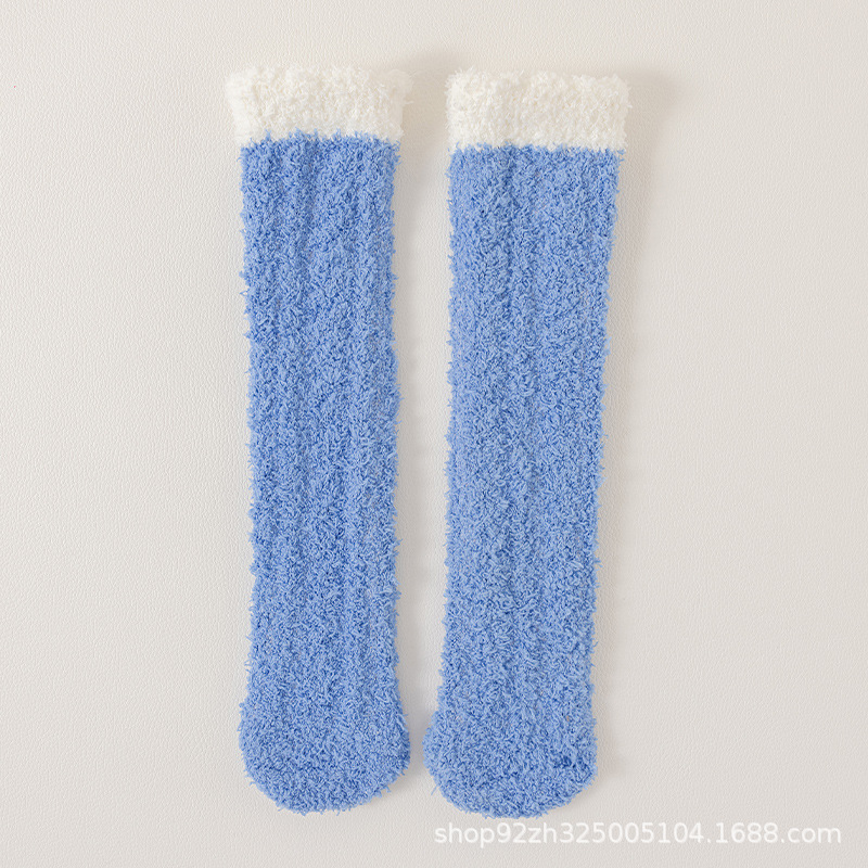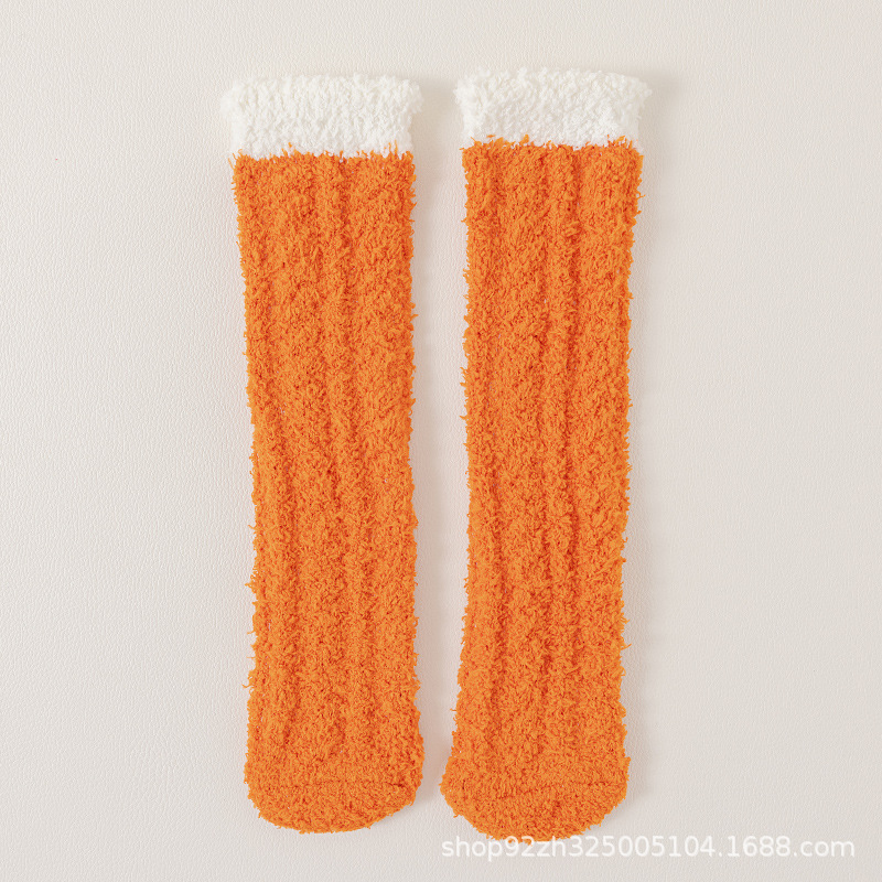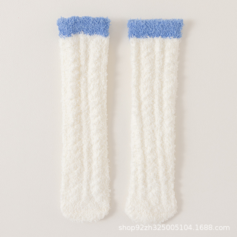 아기 양말 가을과 겨울 긴 튜브 산호 양털 바닥 양말 신생아 유아 중간 튜브 무릎 겨울 두꺼운 따뜻한
