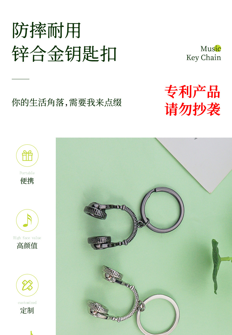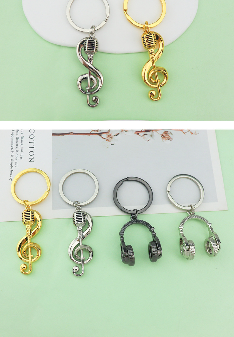 크리에이티브 시뮬레이션 노트 헤드셋 키 체인 패션 음악 작은 선물 펜던트 메탈 노트 키 링 커스터마이징스토어 가기
