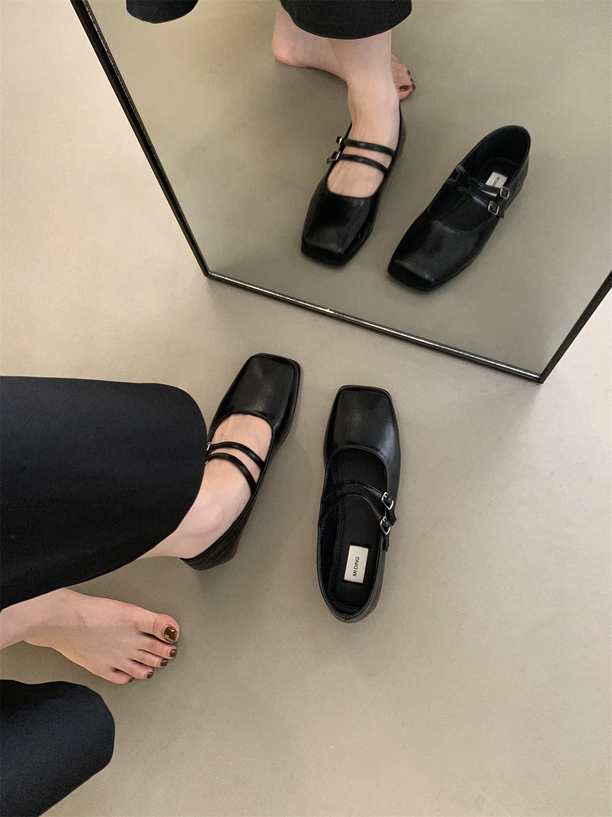 프랑스어 이브닝 브리즈 실버 신발 여자의 플랫 바닥 2023 가을 새로운 우아한 요정 통근 광장 머리 얕은 입 메리 제인스토어 가기