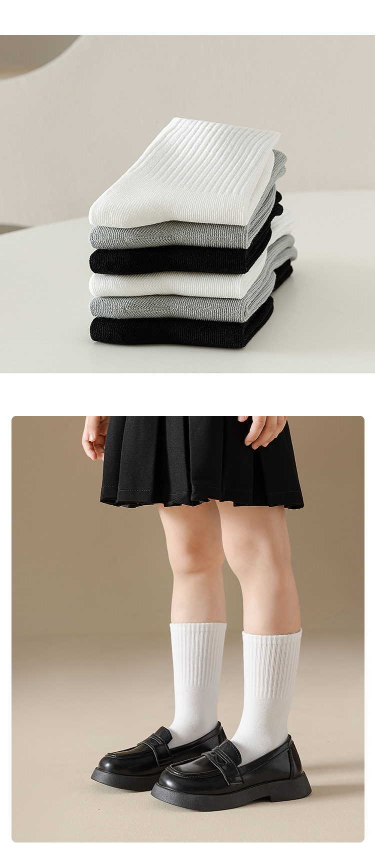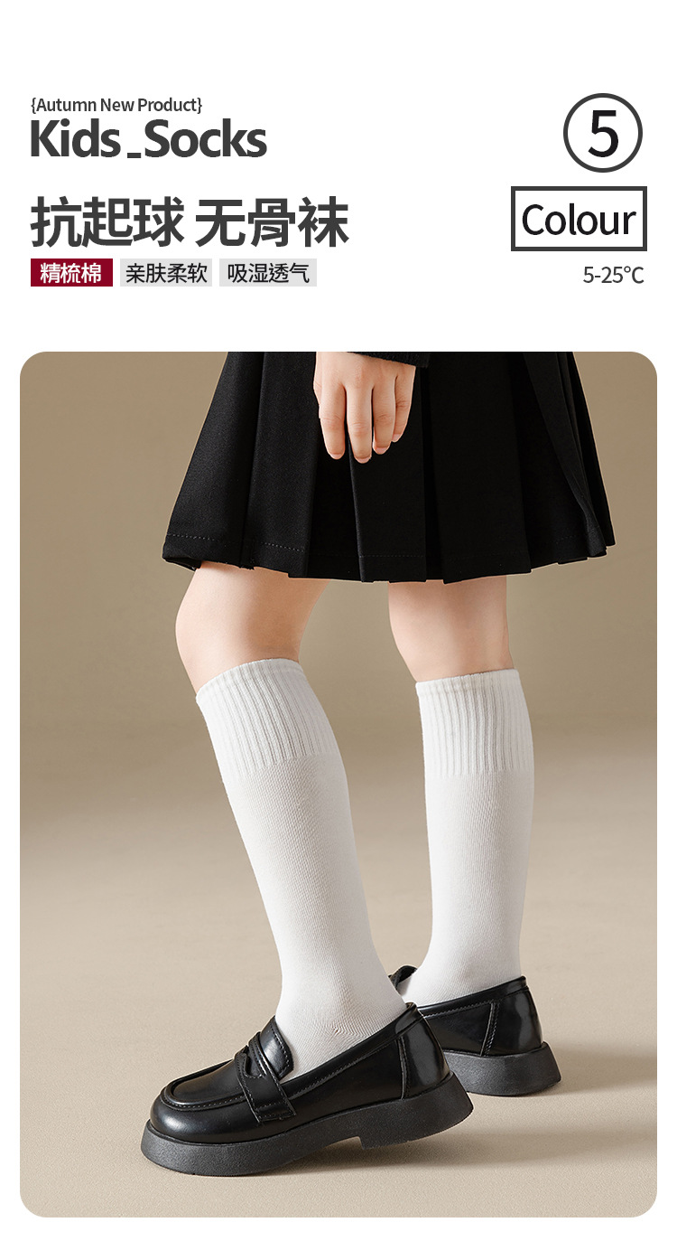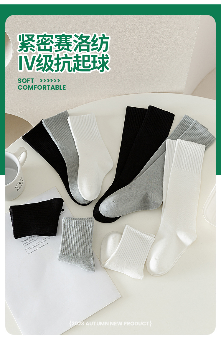 어린이 양말 가을과 겨울 새로운면 양말 소년과 소녀 단색 학생 양말 흰색 양말 필링 방지 뼈없는 긴면 양말스토어 가기