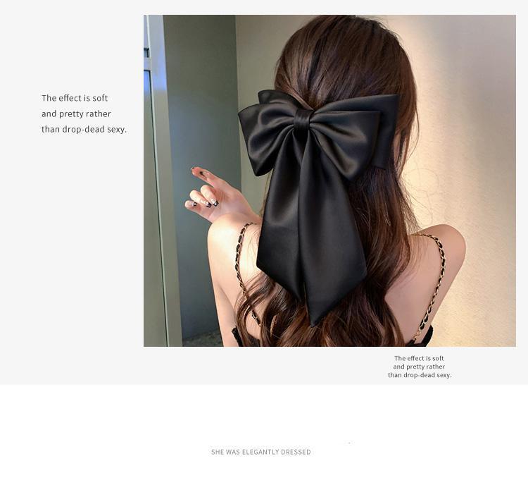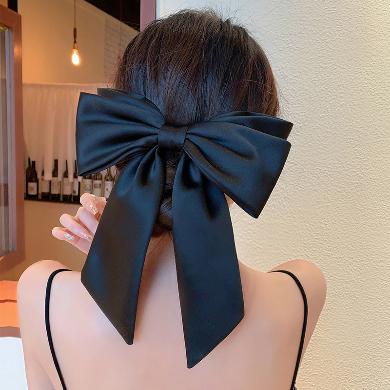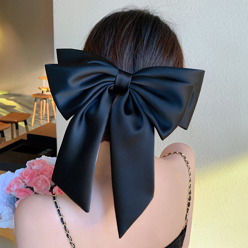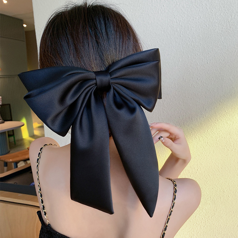 시간 연인 ~ 빅 보우 모자 입체 새틴 스프링 클립 블랙 헤드 머리핀 고급 감각