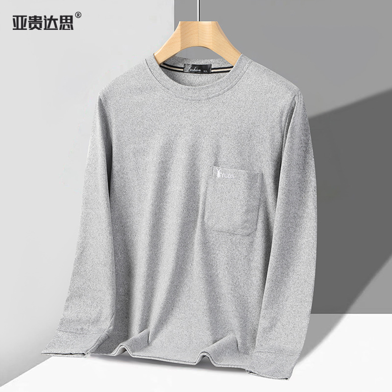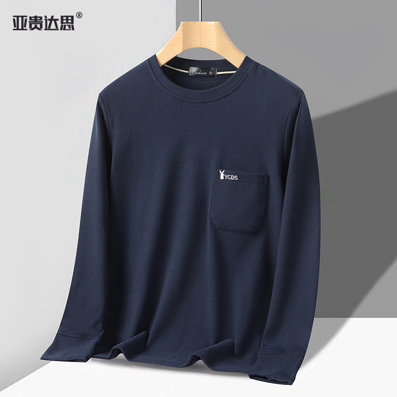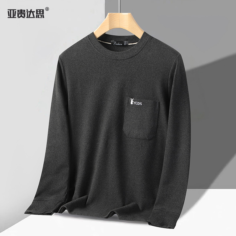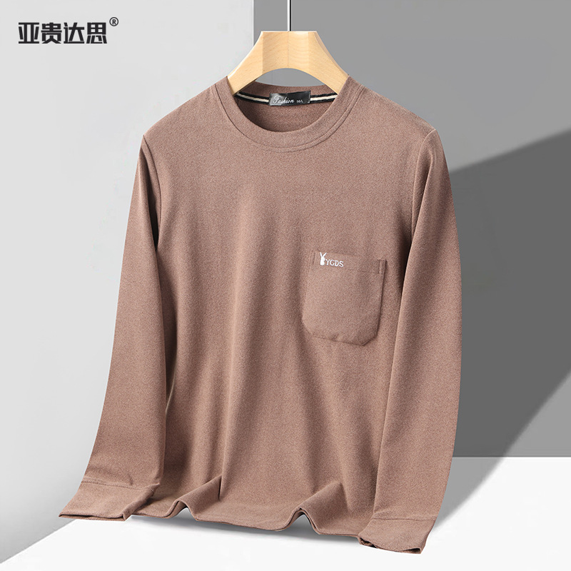 가을과 겨울 양면 샌딩 벨벳 크루넥 중년 긴팔 티셔츠 남자의 따뜻한 내부 가을 옷 두꺼운 기본 셔츠스토어 가기