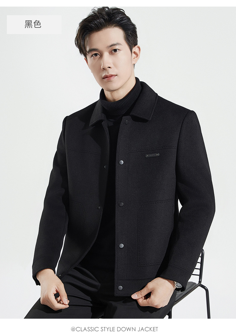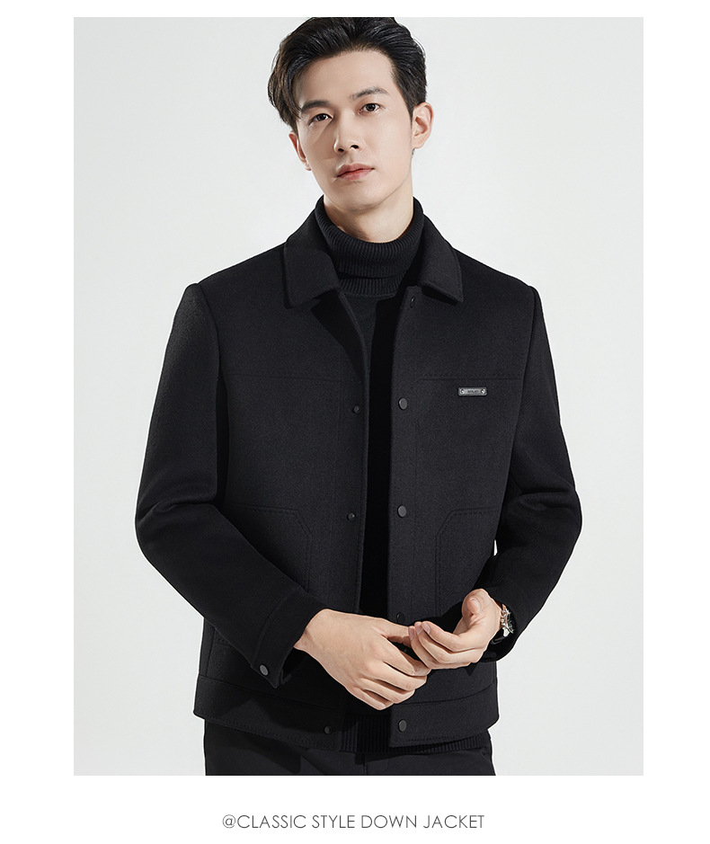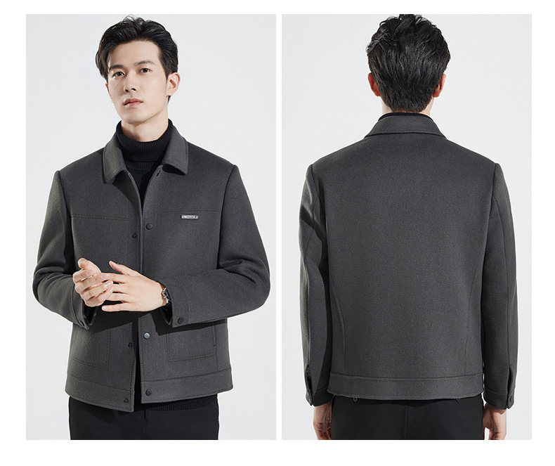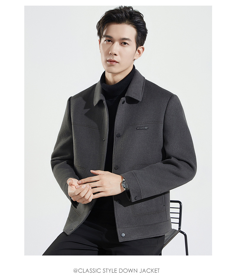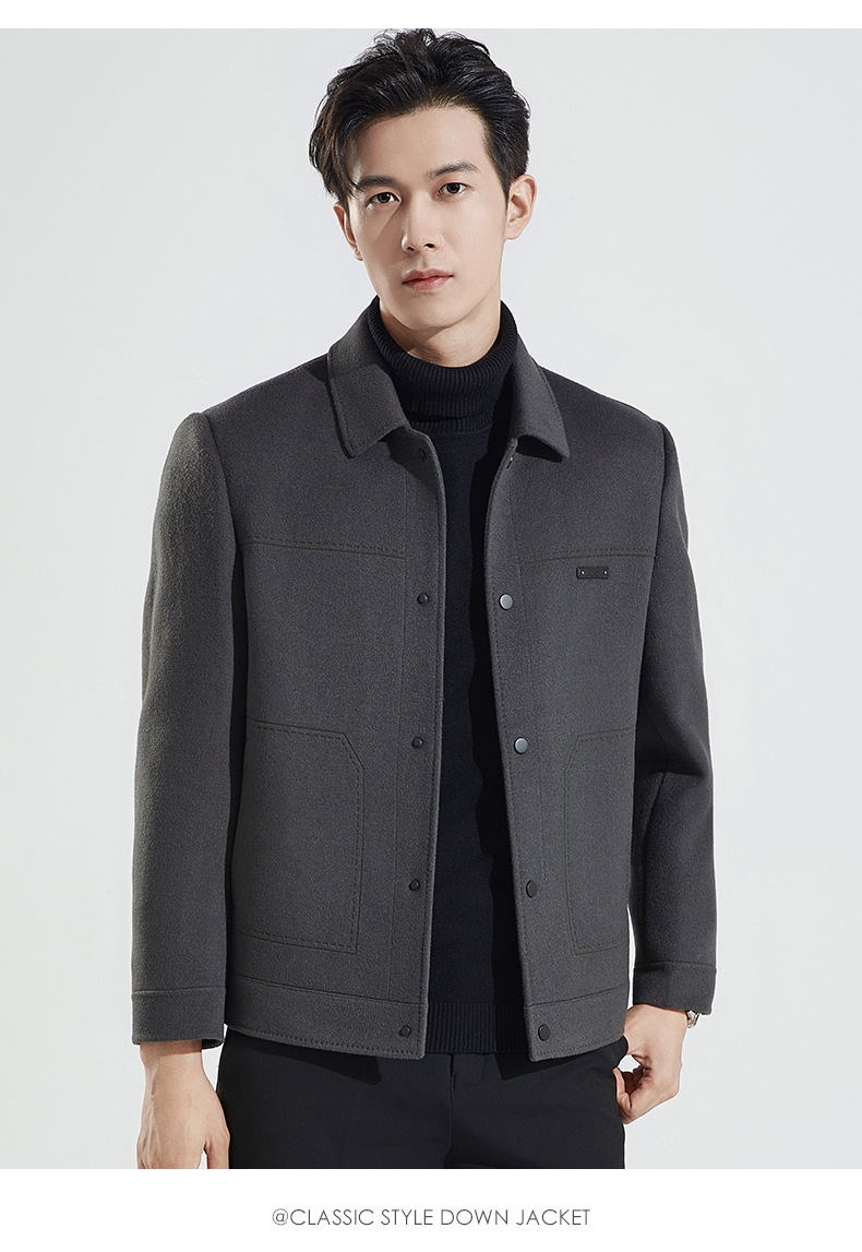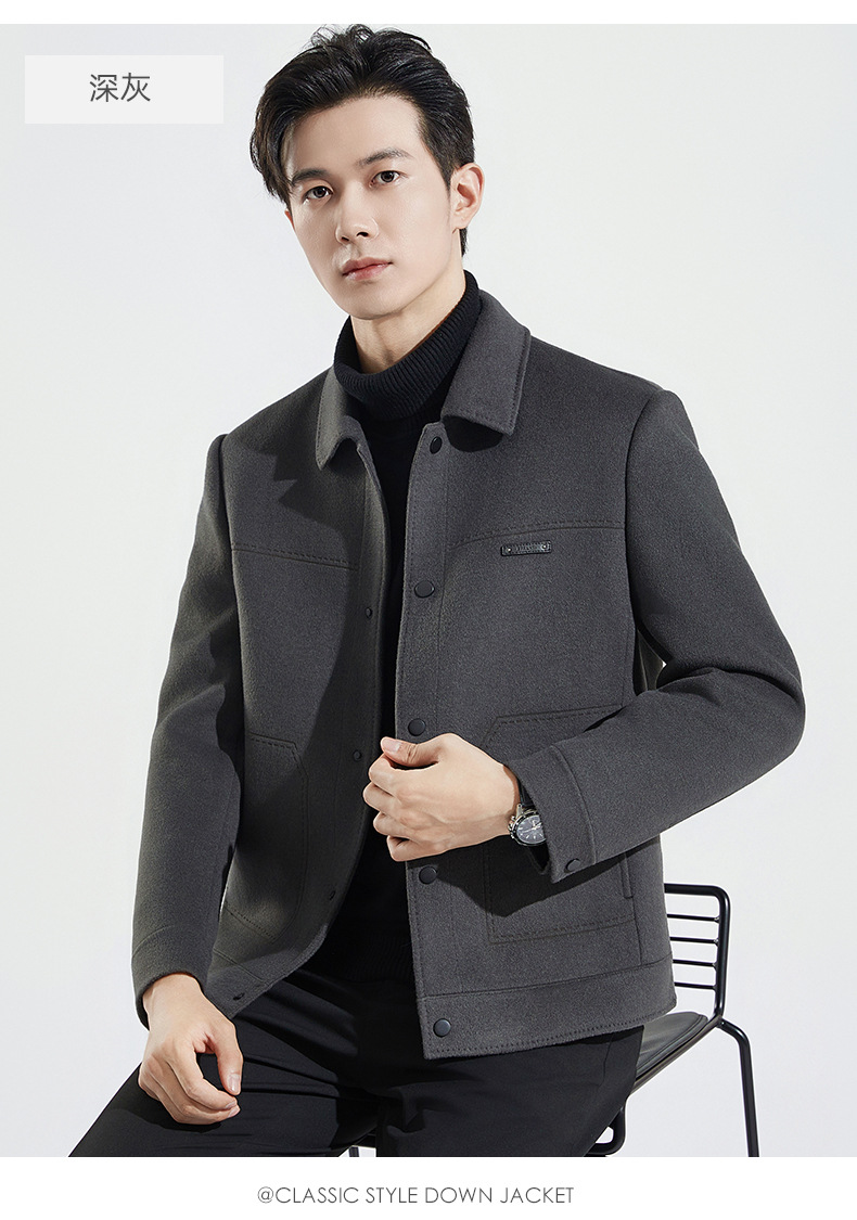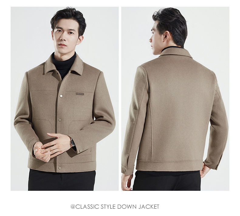 가을과 겨울 수제 양면 트위드 울 라펠 재킷 남성용 탈착식 다운 라이너 두꺼운 모직 울 재킷스토어 가기