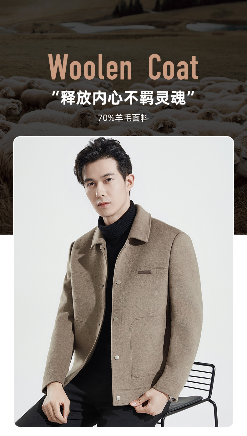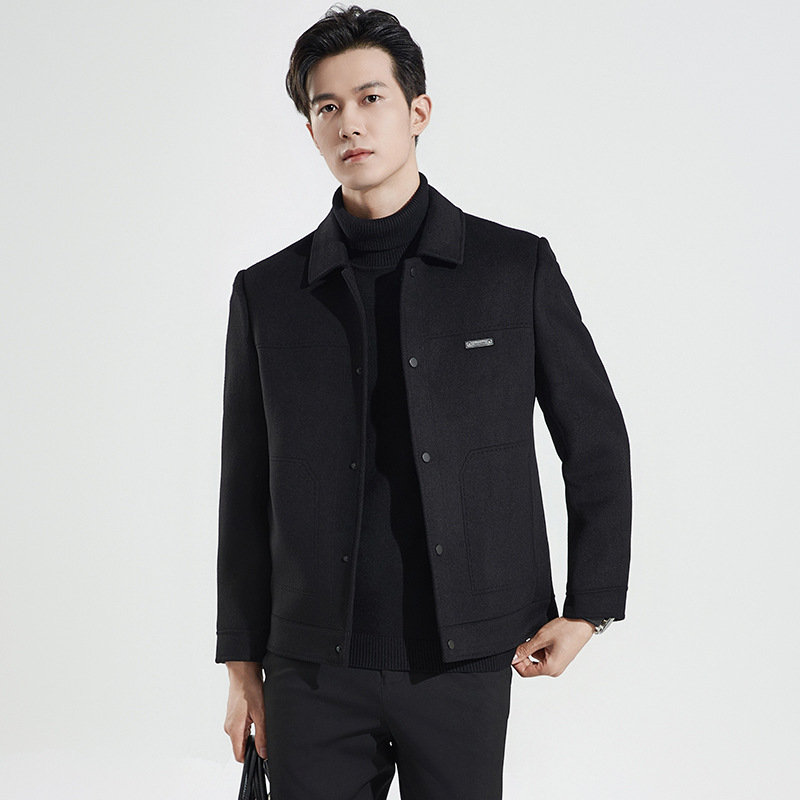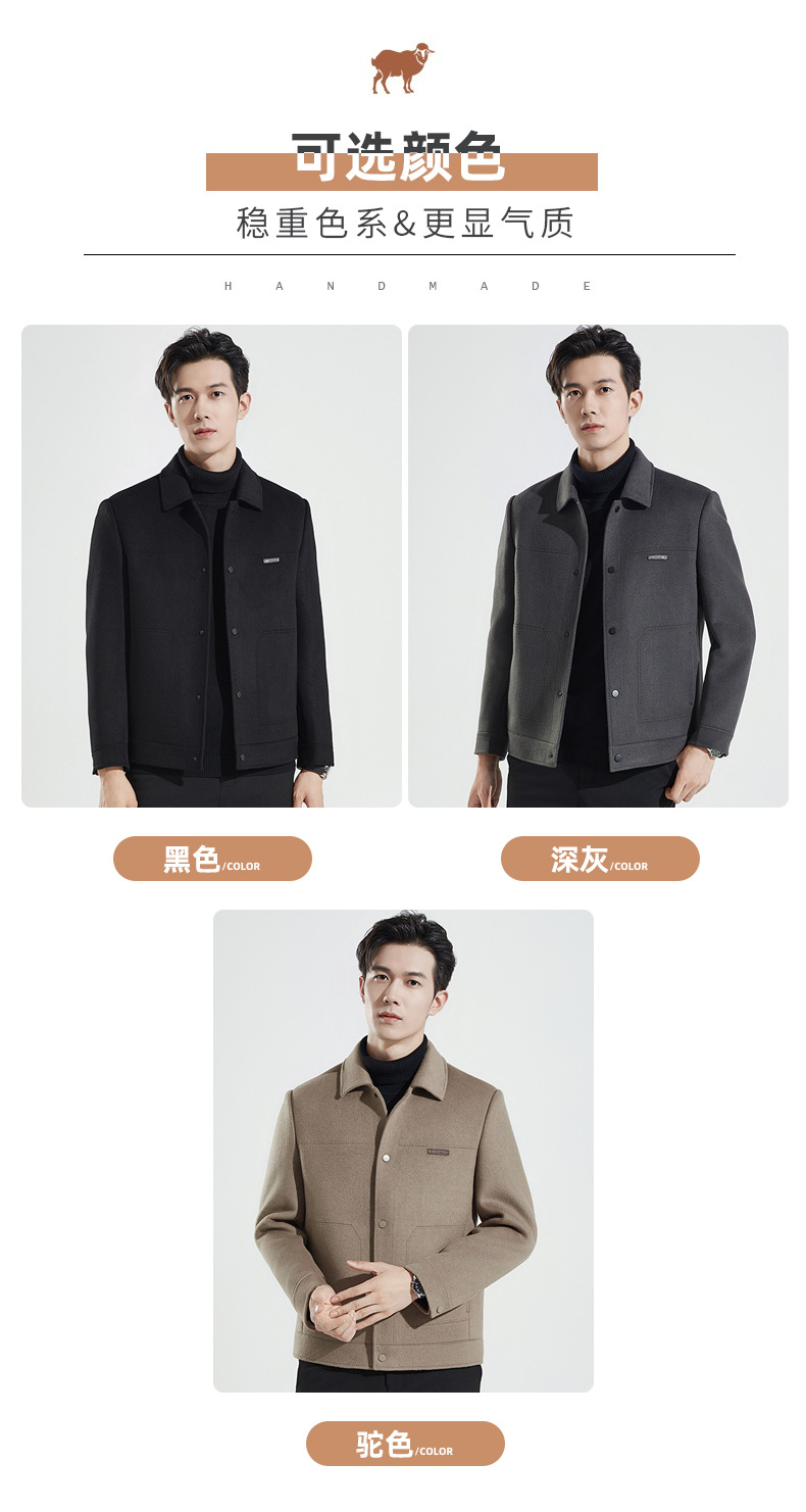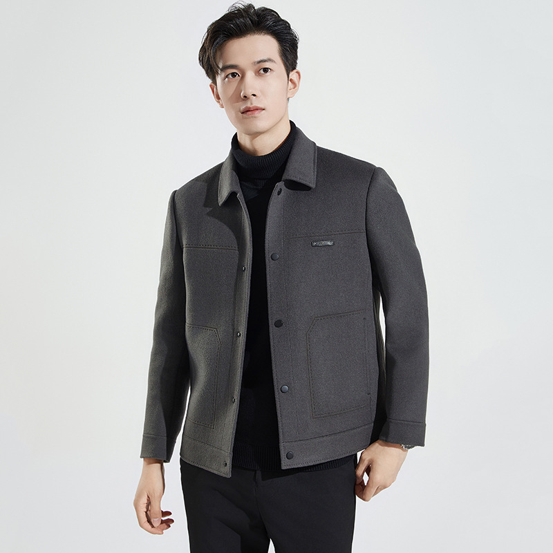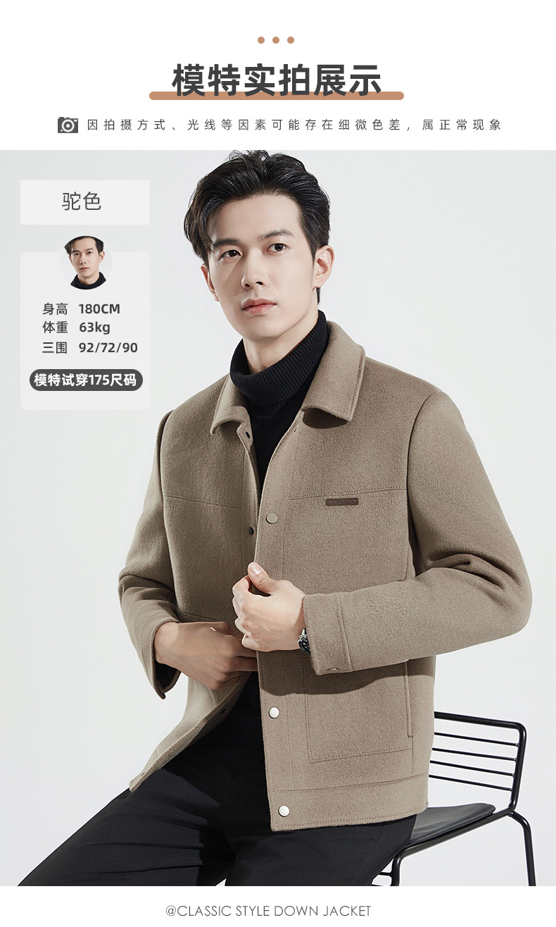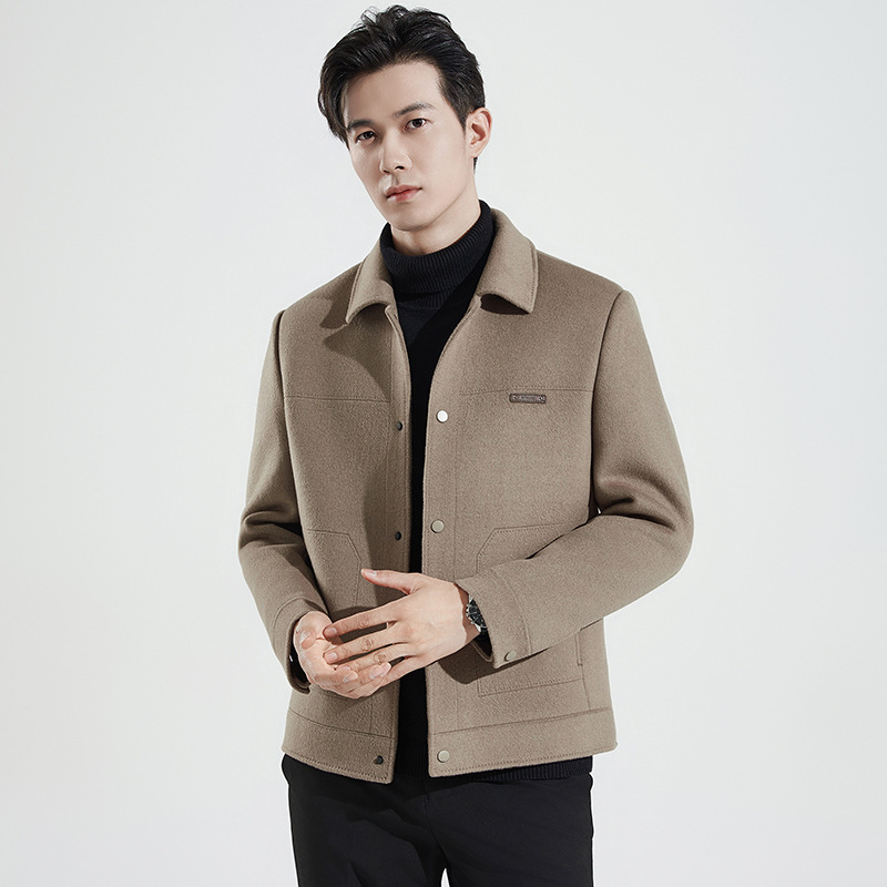 가을과 겨울 수제 양면 트위드 울 라펠 재킷 남성용 탈착식 다운 라이너 두꺼운 모직 울 재킷스토어 가기