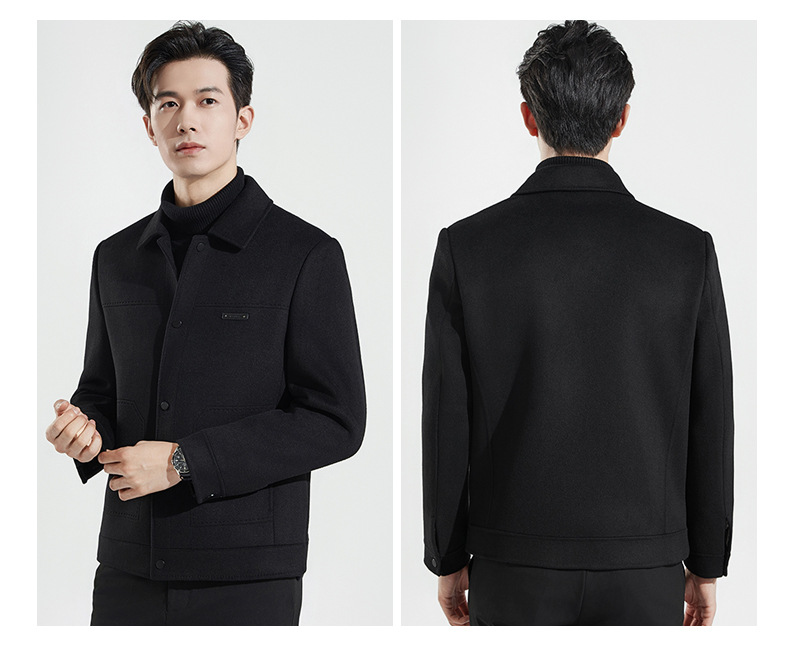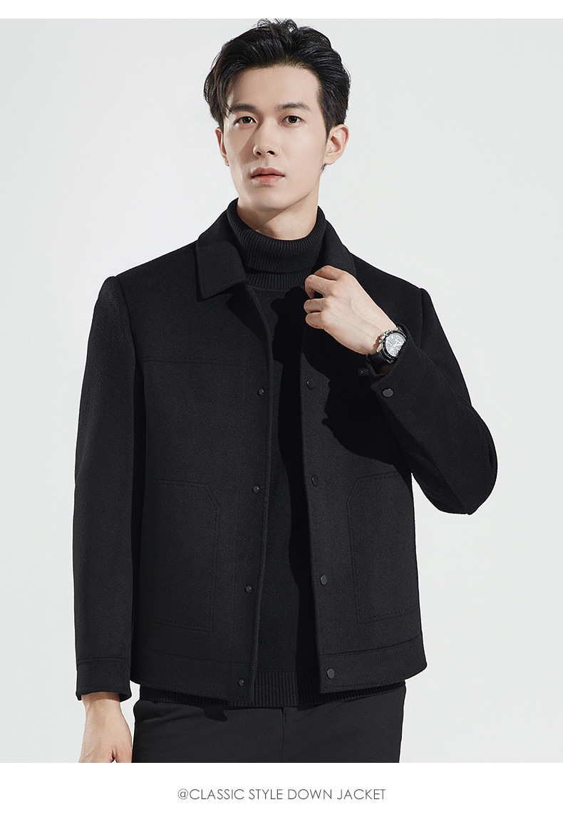 가을과 겨울 수제 양면 트위드 울 라펠 재킷 남성용 탈착식 다운 라이너 두꺼운 모직 울 재킷