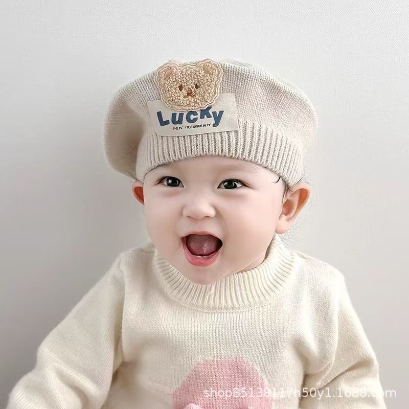 아기 모자 가을과 겨울 양모 니트 모자 아기 베레모 귀여운 슈퍼 귀여운 소년 소녀 어린이 화가 모자 조수 도매스토어 가기