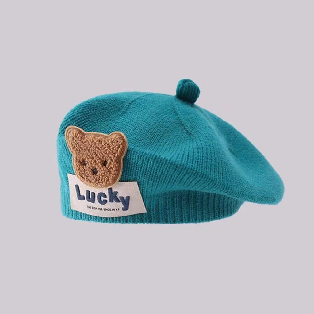 • 스마일리 가죽 라벨 베레모-레이크 블루