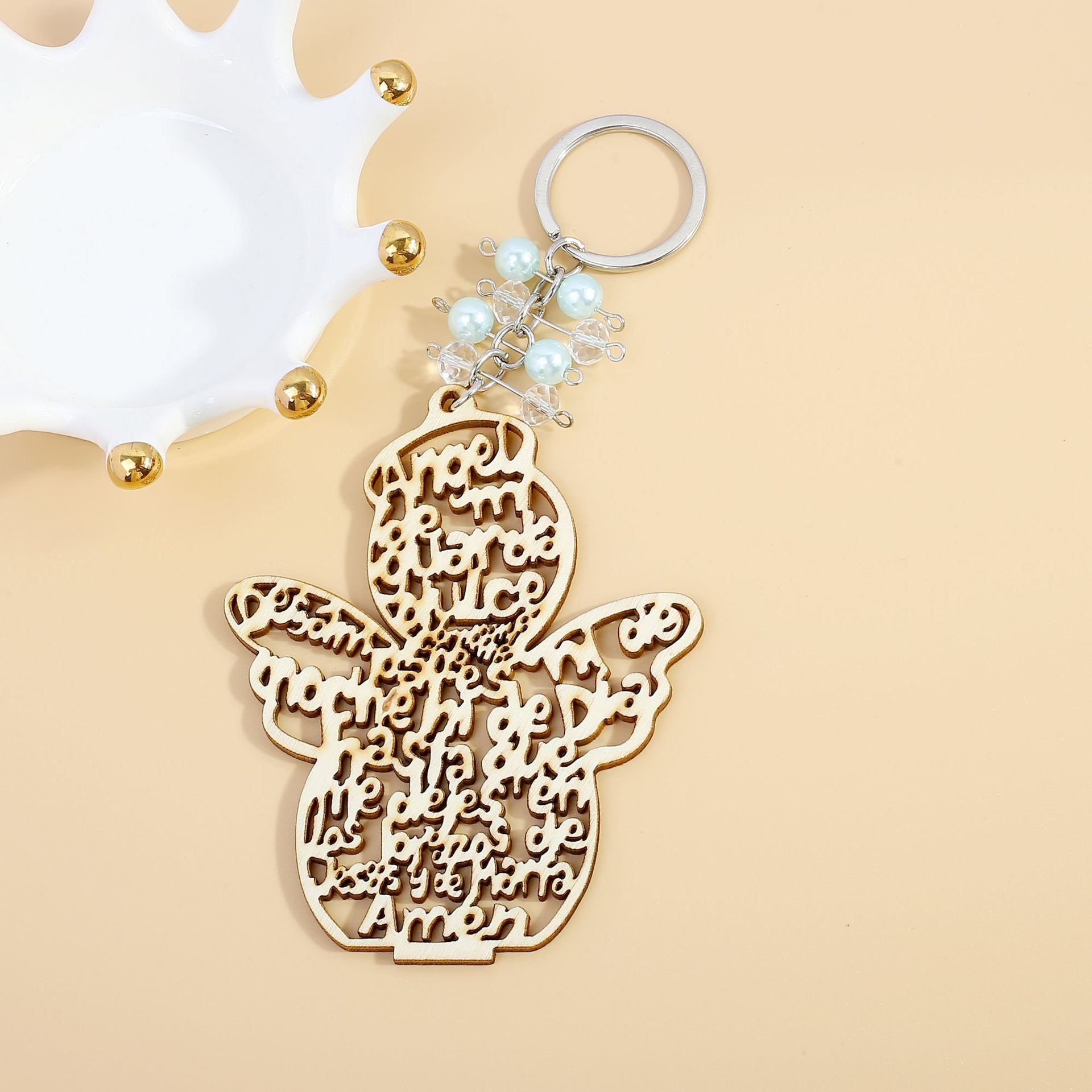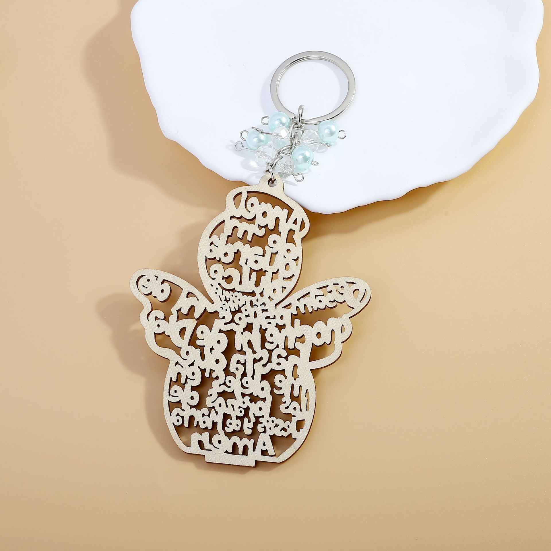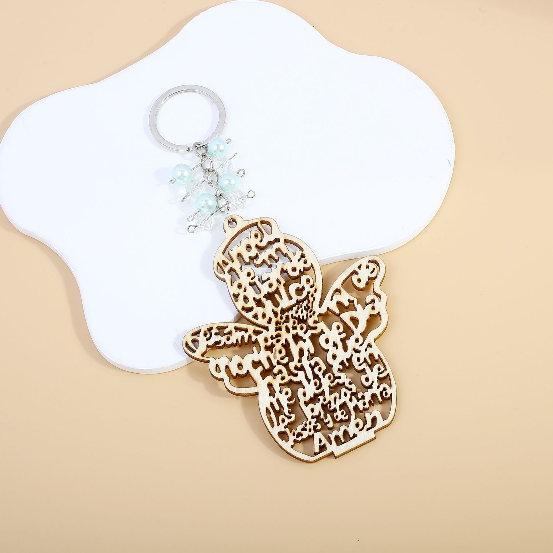 아마존 국경 간 새로운 천사 침례 키 체인 나무 카드 키 체인 소년과 소녀 속이 빈 축복 선물