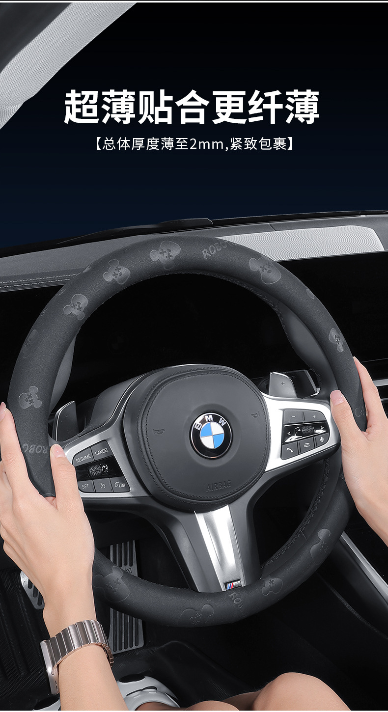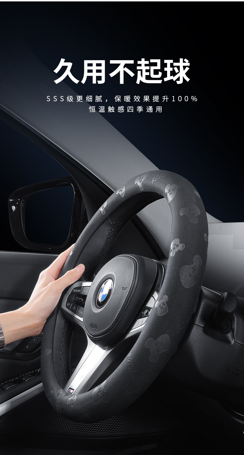 새로운 스웨이드 통기성 땀 흡수성 올 시즌 미끄럼 방지 스웨이드 스웨이드 자동차 핸들 바 커버 남성과 여성을위한 직접 판매스토어 가기