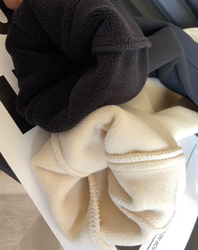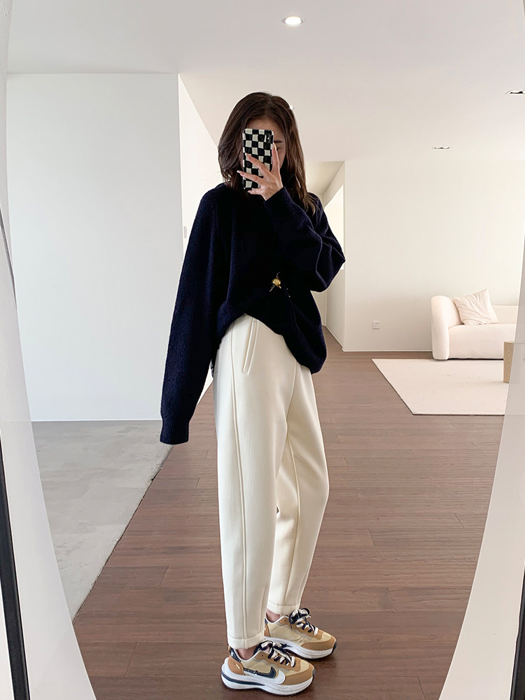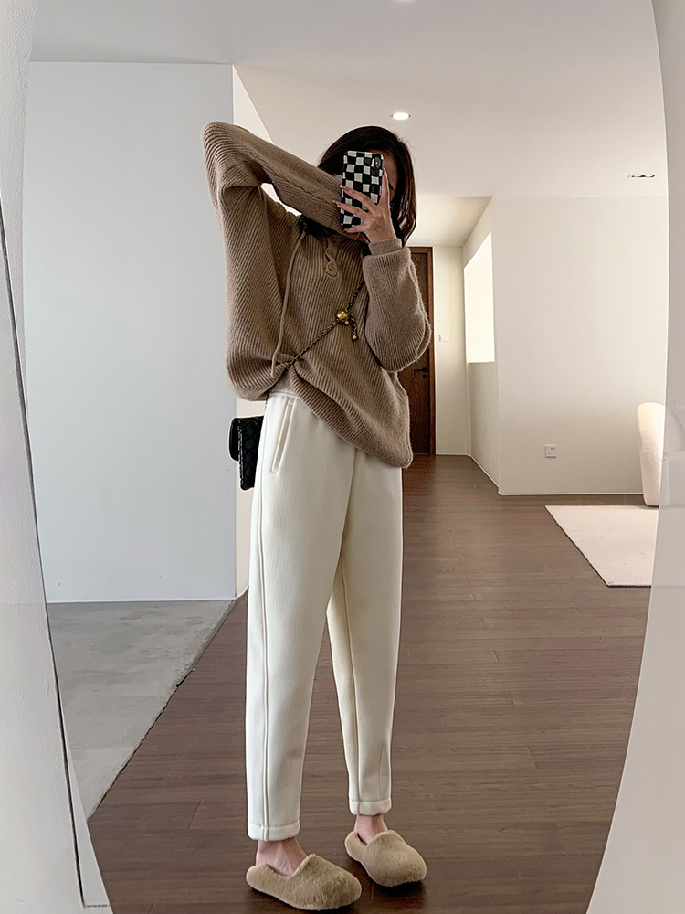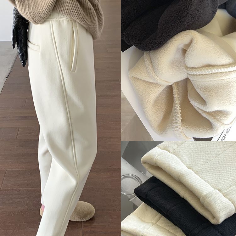 米白色加绒加厚休闲卫裤女冬季棉裤宽松显瘦哈伦裤柔软保暖萝卜裤