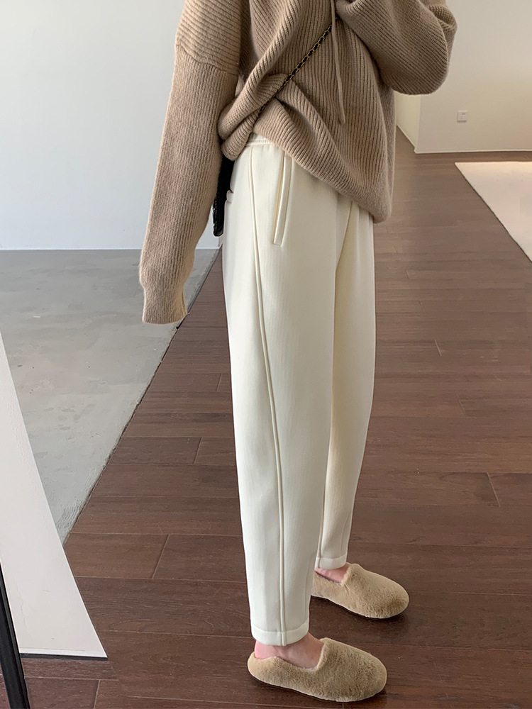 아이보리 기모 두꺼운 캐주얼 운동복 바지 여자의 겨울 9 점 느슨한 슬림 하렘 바지 부드러운 따뜻한 당근 바지