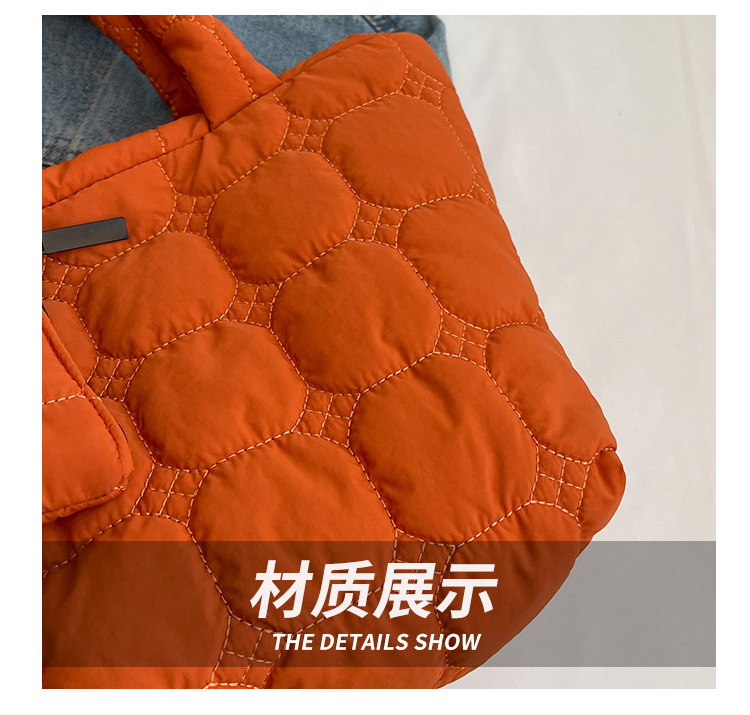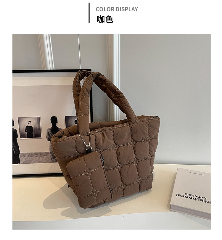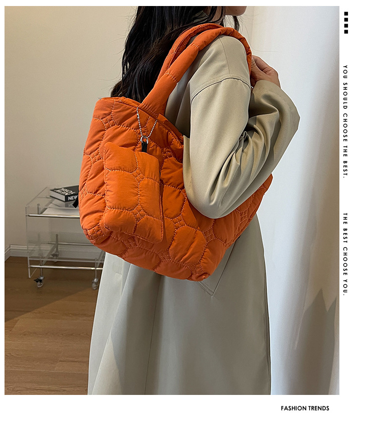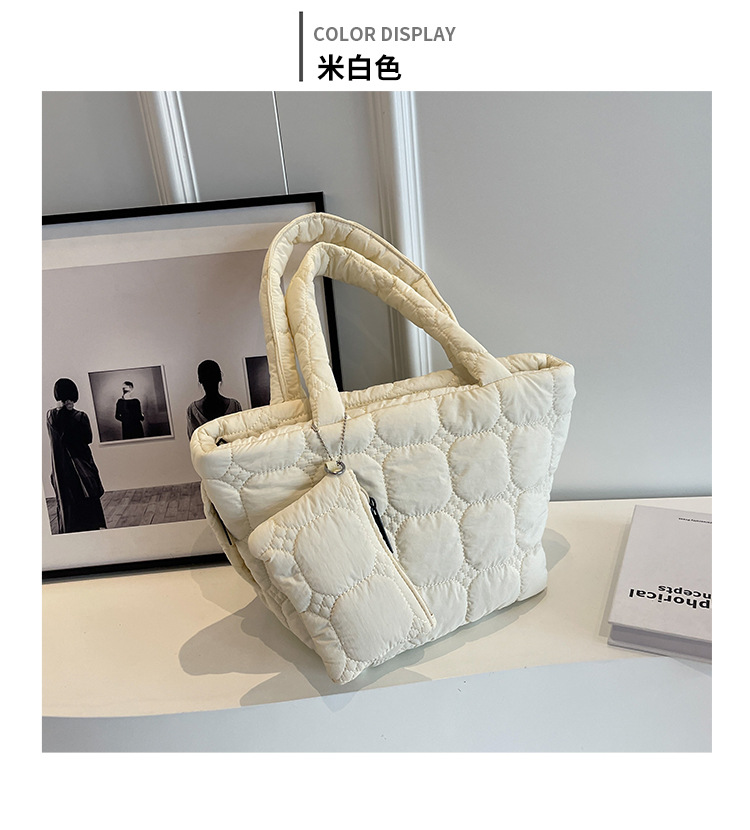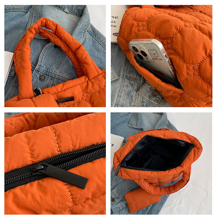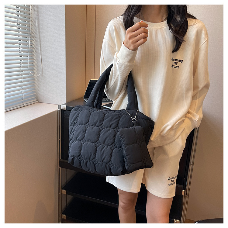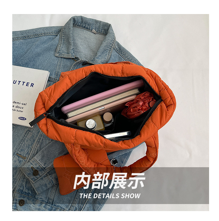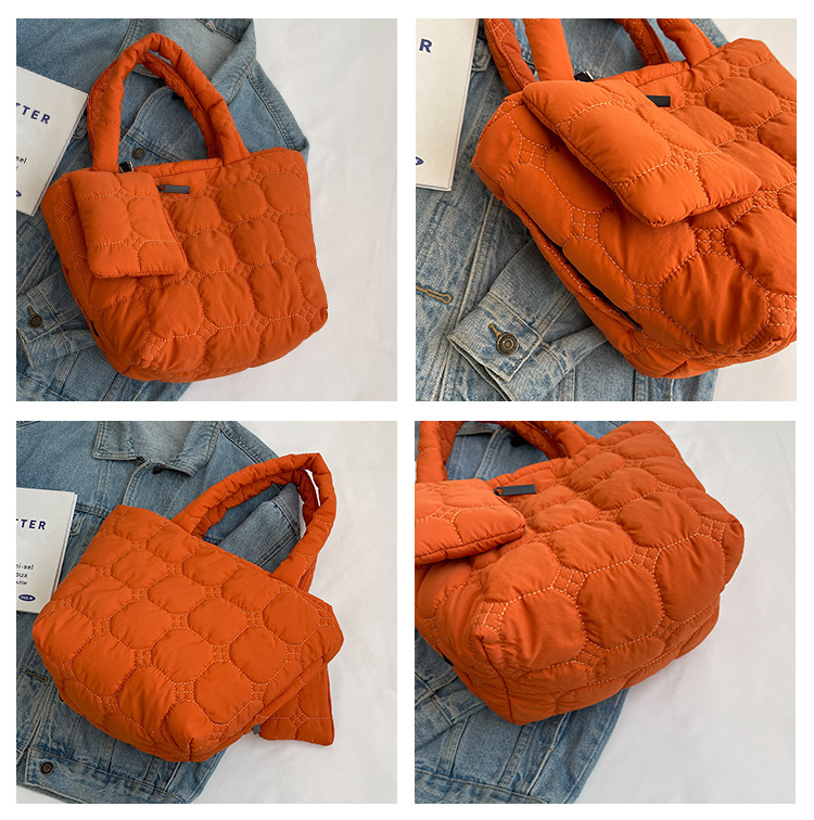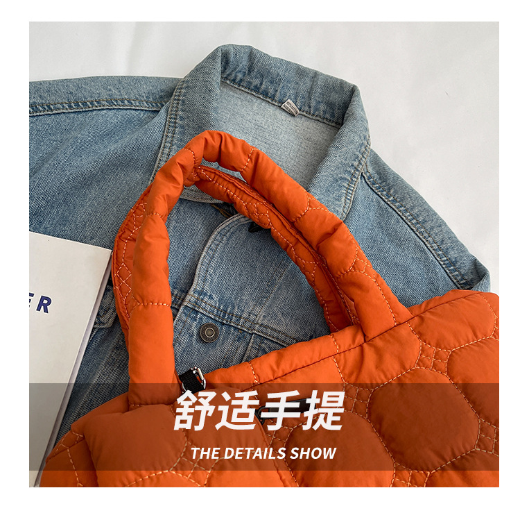 2023 가을과 겨울 New Space 코튼 토트백 언더암 백 여성 코튼 패딩 자켓 백 한국 자수 실 여성용 핸드 숄더백