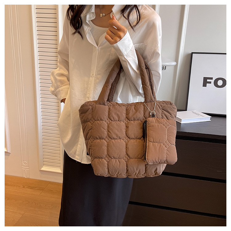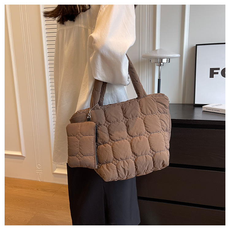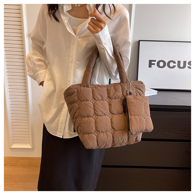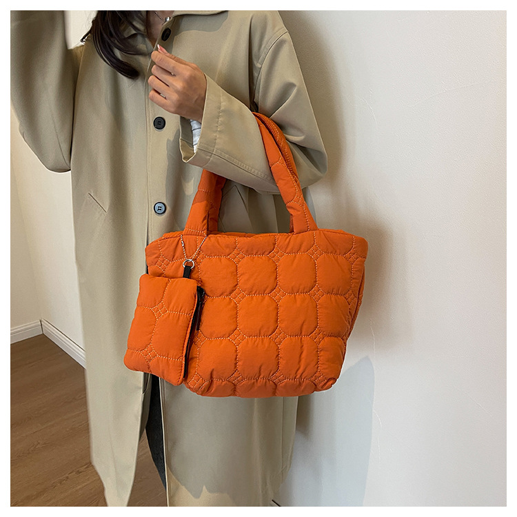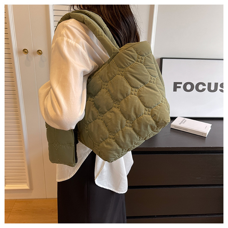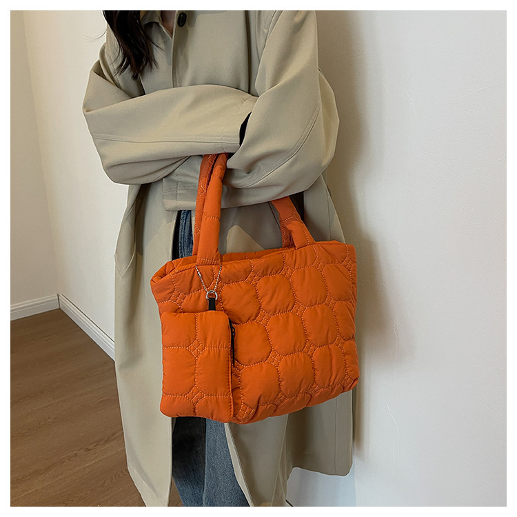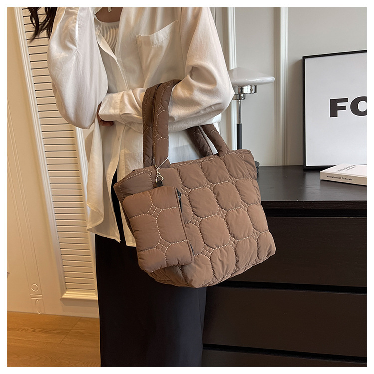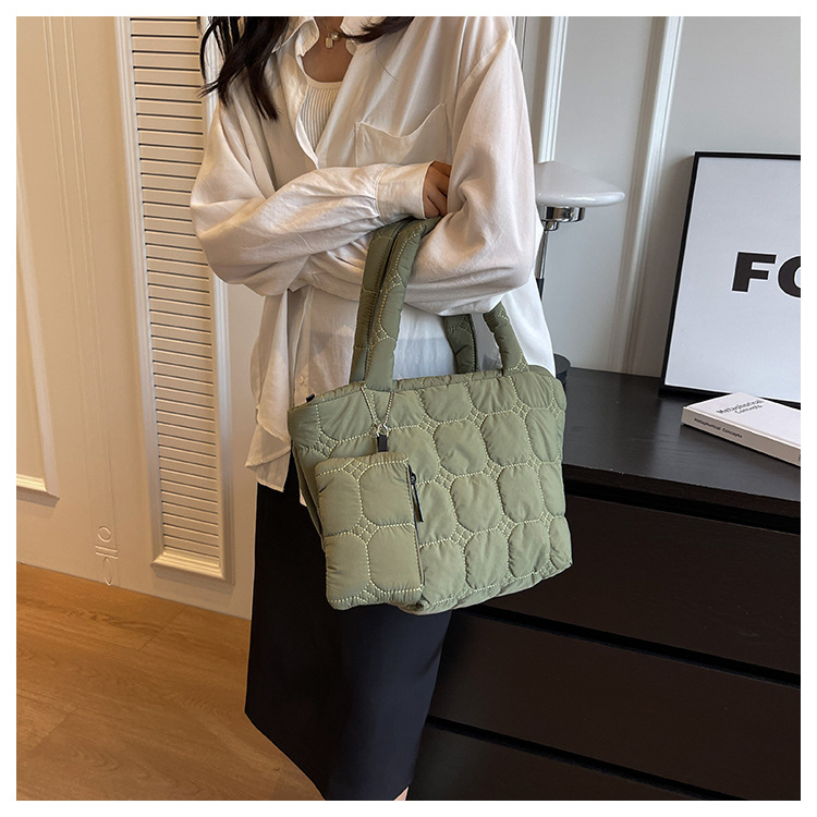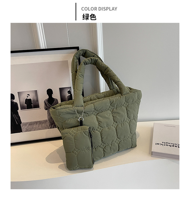 2023 가을과 겨울 New Space 코튼 토트백 언더암 백 여성 코튼 패딩 자켓 백 한국 자수 실 여성용 핸드 숄더백