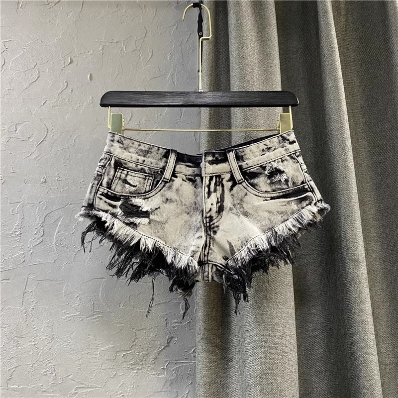 2023 새로운 여름 낮은 허리 라이트 그레이 찢어진 버 A 형 핫 팬츠 한국 여성 의류 성격 데님 반바지 여성스토어 가기