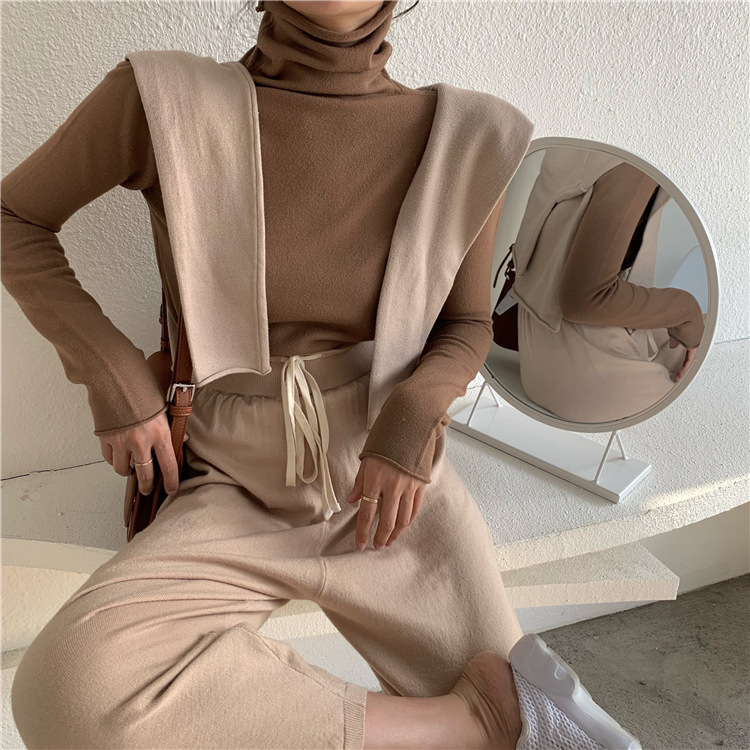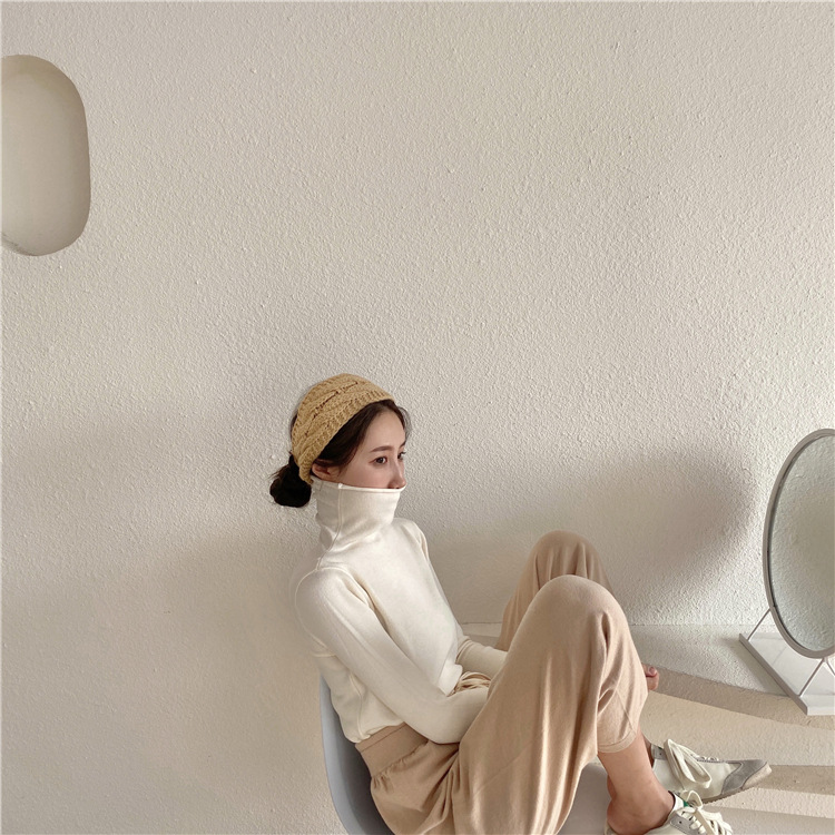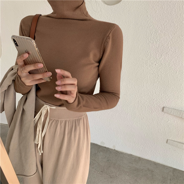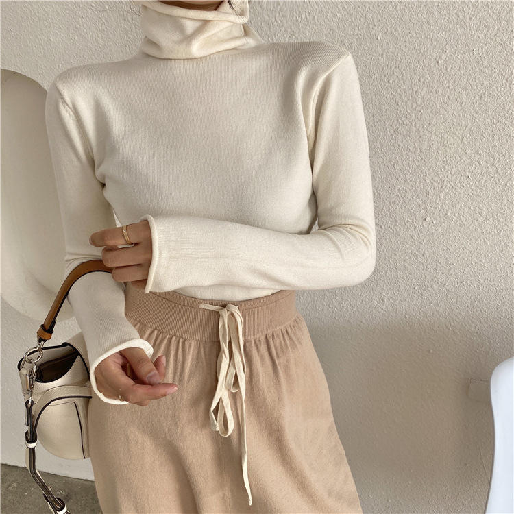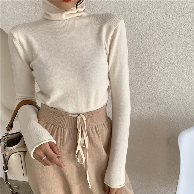세련된 터틀넥 스웨터 한국 슬림 핏 슬리밍 바닥 스웨터 여성 긴 소매 탑 가을과 겨울